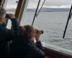 During the afternoon our home moved to Santa Fe, which is just two hours away from Plaza. The first group departed to kayak around the bay where we anchored, others left for a long hike along the cliffs of the island. I disembark with the first group of hikers on a landing beach. We were welcomed by curious sea lions and the Conolophus pallidus or Santa Fe Iguana land iguana, which is restricted to this island. Inland trails led to communities of other animals like snakes, lava lizards, finches, doves, and more. From the top of the cliff the view was spectacular. The soil in the surrounding area was soft and perfect for lizards and iguanas nesting. We observed several of them along the forest of palo santo trees. After a great day we came back on board to celebrate life and the unique creatures observed today.