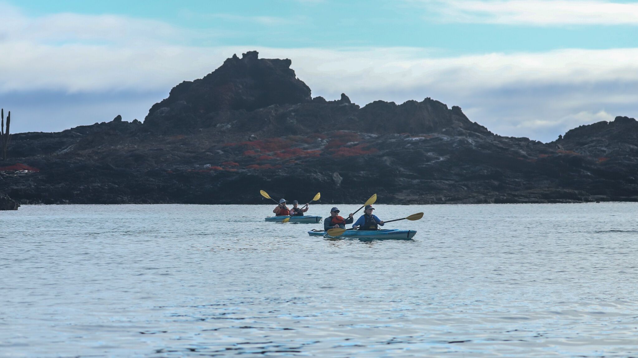 An amazing day started with an early walk on South Plaza Island. Galapagos sea lion pups welcomed us by the disembarkation area and along the trail we found the endemic swallow-tailed gulls together with their chicks while Galapagos land iguanas were looking for food underneath the prickly pear cacti. After our trek, we enjoyed awesome weather conditions for our first kayaking outing!