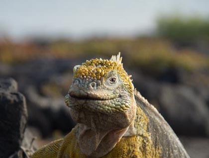 Today we woke up to a beautiful sunrise on the Island of South Plaza. Because we know that the weather at this time of the year gets quite hot, we organized an excursion before breakfast, early in the morning. As soon as we landed at this little place, baby sea lions were there to welcome us and play with each other. As we continued walking up the path, we found land iguanas, which was the first time we saw them in the wild. South Plaza is one of the few places in the archipelago which was formed first underwater and eventually was uplifted by more volcanic activity. The result of all these processes is a flat place that can host many different species of birds, mammals and reptiles. The population of land iguanas we found is up to the hundreds, so we saw males, females and juveniles. Also in the middle of the trail, there was a special colony of sea lions which is comprised of bachelor or male sea lions that have lost their territories over battles.