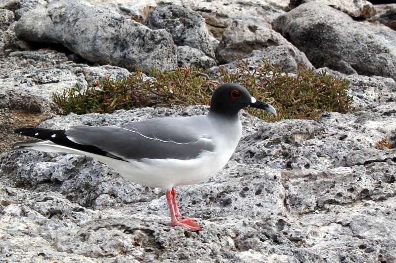Further inland there was a spectacular cliff side where many sea bird species can be observed. Once we arrived at the highest point to walk along the cliff, we found the best site to watch sea birds in action. Galapagos shearwaters were skimming the ocean surface looking for food, Blue and Nazca boobies were also gliding along the cliffs plunge diving for food. Swallow tailed gulls were seen flying around or taking care of their hungry youngsters. Occasionally, frigate birds were seen gliding in the blue sky.
