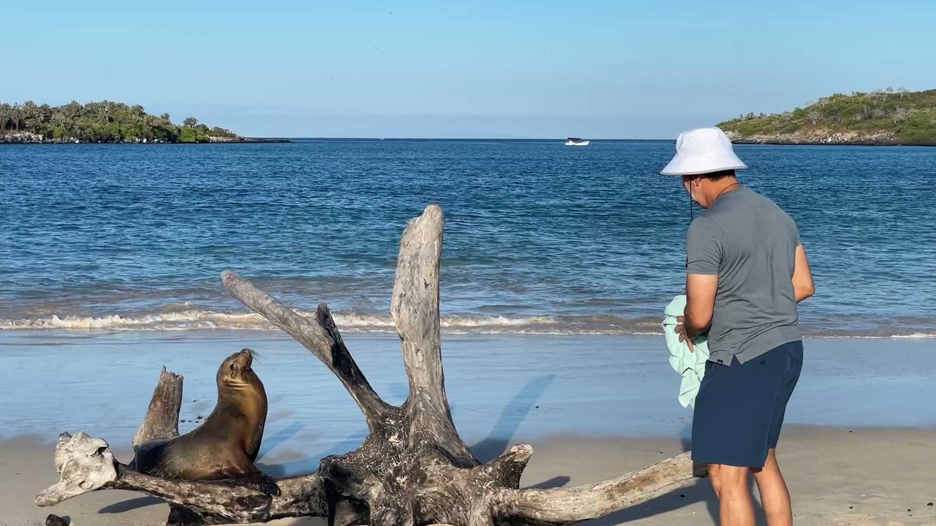 We navigated to Santa Fe Island in the afternoon and enjoyed a snorkeling excursion. Curious sea lions played with each other, and multiple Pacific green sea turtles swam by serenely. Much to our amazement, a school of eleven spotted eagle rays glided by in formation! We went ashore in the late afternoon to explore Santa Fe’s unique landscape and giant opuntia cactus forest. What a wonderful end to our day!