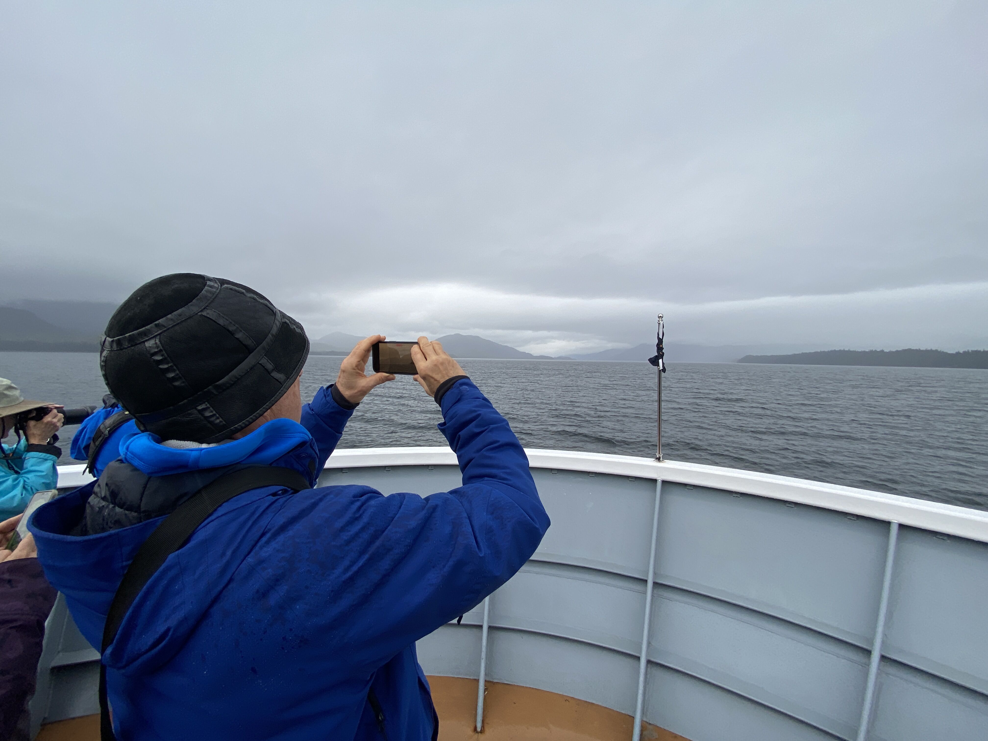 We spent the afternoon cruising in search of whales. Miraculously, we found one almost immediately from miles away. The massive animal breached up and out of the water, and its splash cued us into action. From the bridge our chief mate Carolina and I kept a vigilant eye and ensured the animal would not elude us. After a long pursuit we positioned ourselves about 200 yards from the animal and watched as it cruised through Freshwater Bay. In a stroke of good luck, the whale flashed its fluke directly at the bow, enabling our natural history staff to snap a photo for identification. This whale was revealed to be Papercut, an individual first spotted before I was born that has been transiting between Alaska and Hawaii for nearly three decades.