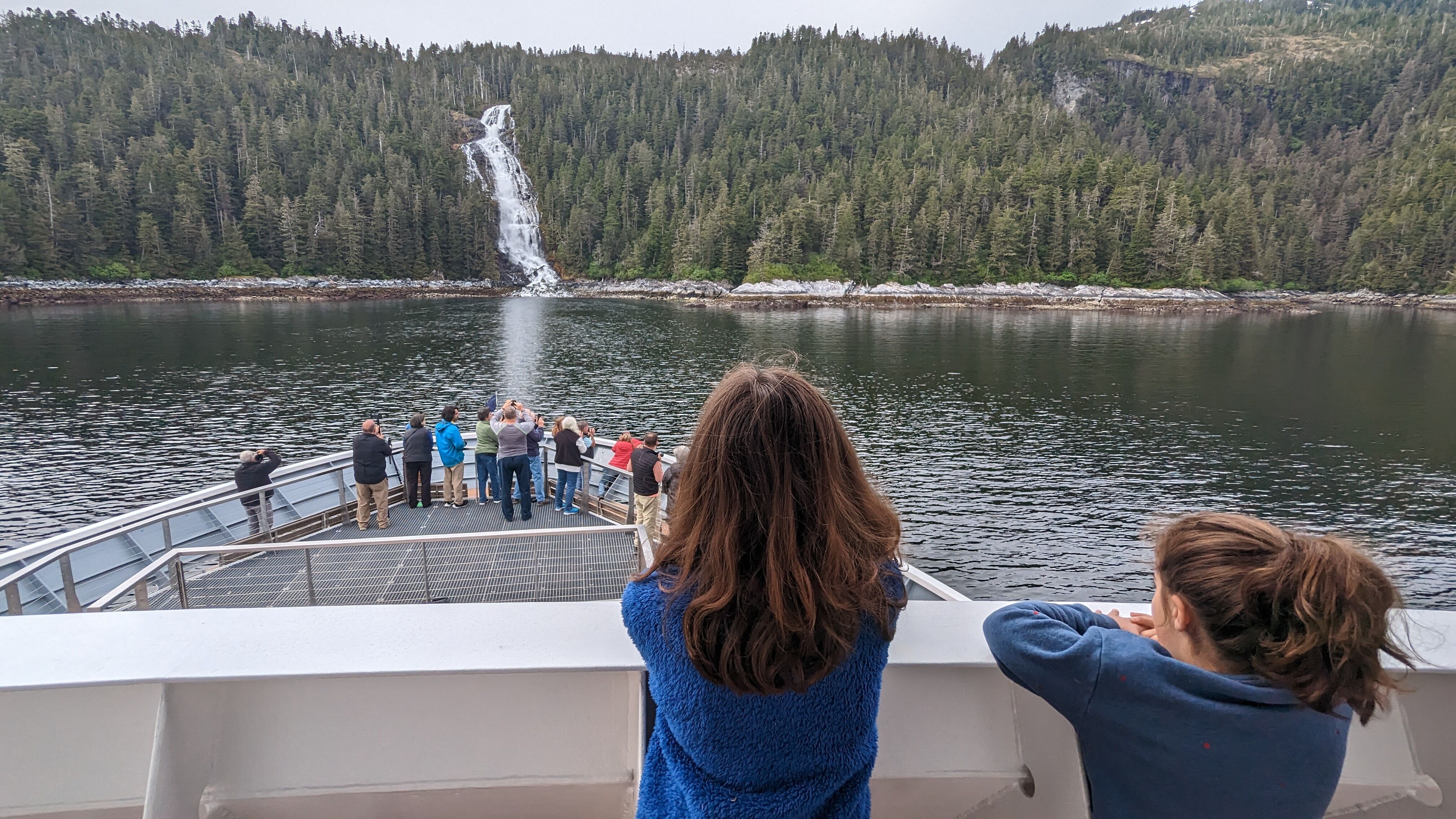 As guests enjoyed another incredible meal and cheerfully celebrated anniversaries and birthdays, National Geographic Venture’s bridge team engaged the bow thruster and slid smoothly into our docking area. We offered several after dinner walks at Bartlett Cove, Glacier Bay National Park’s headquarters, which is about eight miles from the town of Gustavus. Hikers enjoyed short walks and were lucky enough to spot some terrestrial mammals. Two porcupines munched away at spring shoots and sedges along the hiking path. As we said our final goodbyes and walked toward the ship, many stopped to view and read about Snow, a pregnant humpback whale that was struck and killed by a cruise ship. The Big House was hosting Hoonah youth for a summer event. Today was another day filled with excitement, exploration, and the vibrant beauty that is Southeast Alaska.