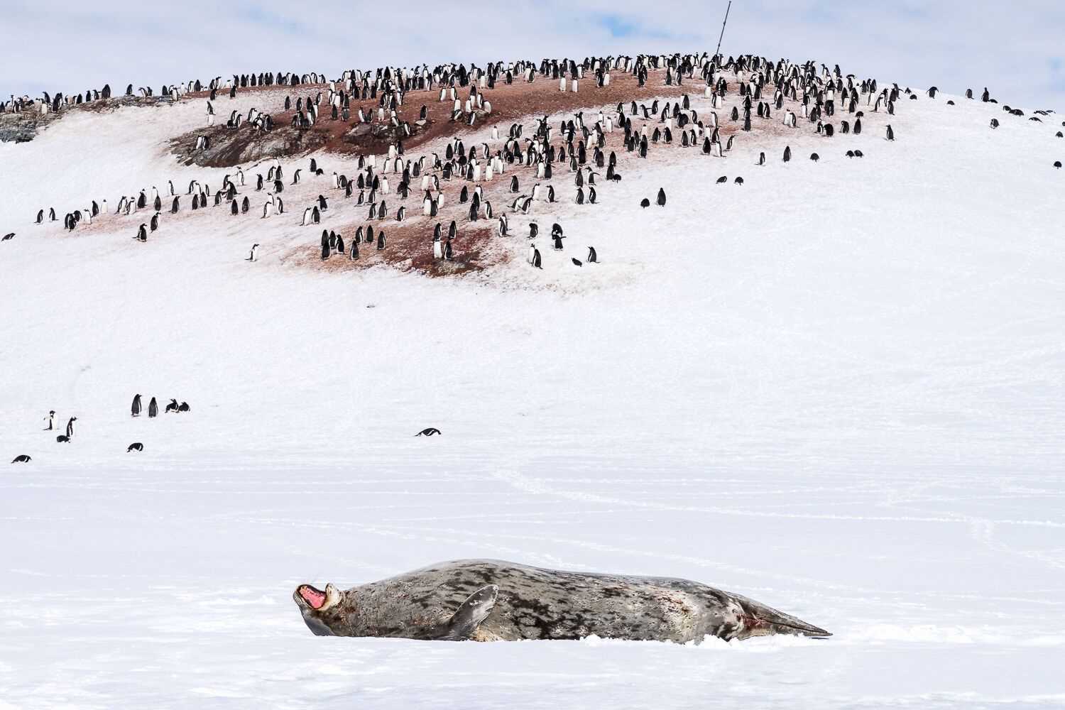 The afternoon weather allowed for kayaking and a leg stretch at Mikkelsen Harbor. With quite a bit of snow still on the ground, some guests enjoyed watching the penguins go about their day as Weddell seals napped along the coastline. Other guests paddled around the bay and took in the beautiful surroundings.