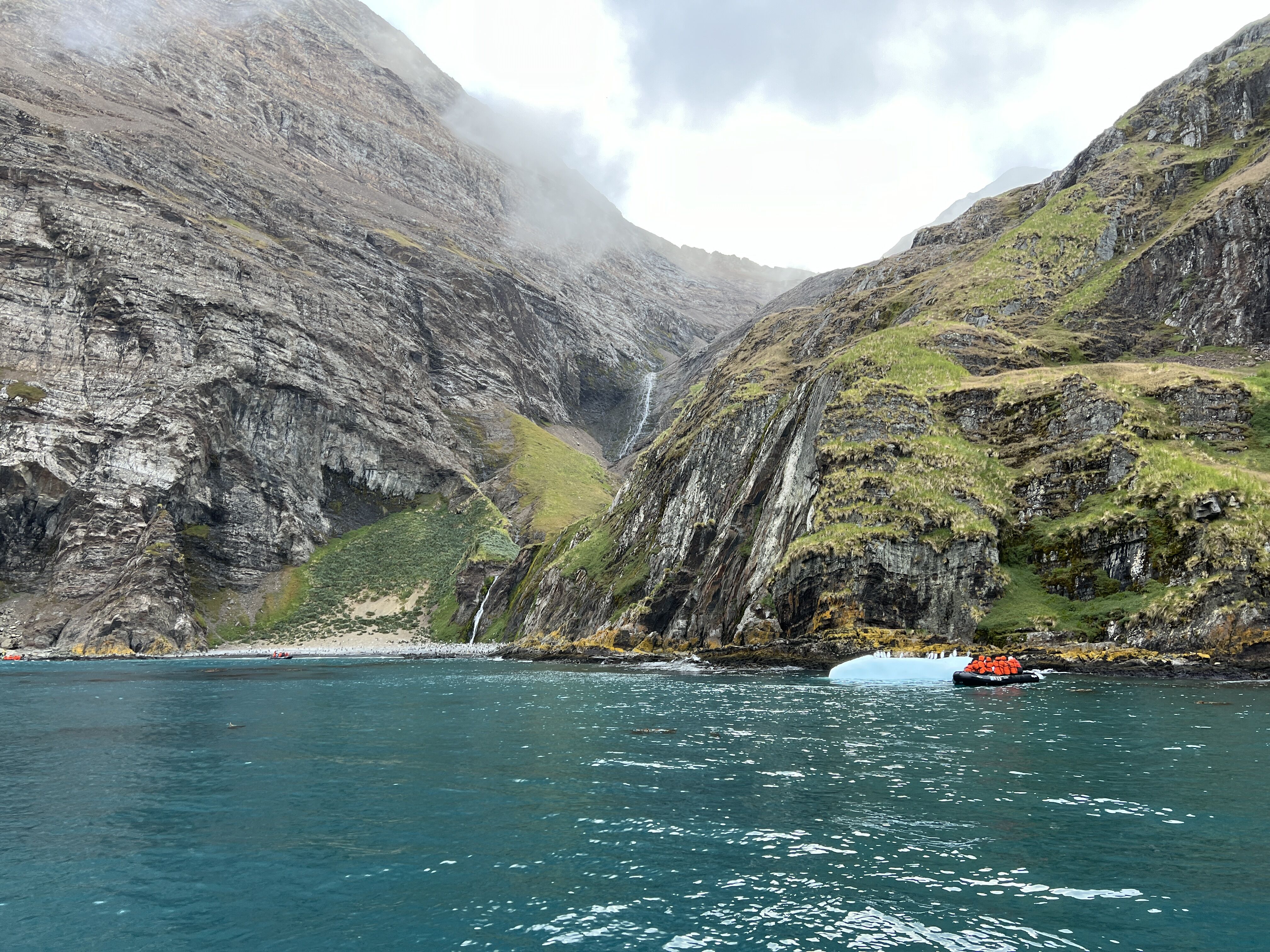 Today we woke up to see Spert Island bathed in hazy sunshine. After a delicious breakfast it was time to load up into our Zodiacs, ready for an adventure. Spert Island is full of narrow channels and caves. We passed through a huge cave often referred to as, The Cathedral. It was so beautiful as the blue of the water contrasted with the browns of the rocks on either side. We were all heading for the ship when we spotted a humpback whale. We watched it dive, showing its impressive fluke.