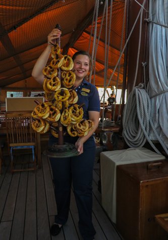 We returned to the Sea Cloud and Tom O’Brian and our very capable captain made it possible for us to sail towards the Pitons. We enjoyed a local Piton Beer and freshly baked pretzels on the spanker deck while we viewed the Pitons and a glorious sunset.