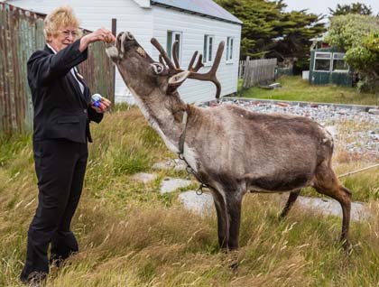 A definite highlight of Stanley for me personally was to have our guide Nancy Jennings introduce us to “George,” an 8 year-old reindeer brought to the Falklands from the island of South Georgia. We of course have just left South Georgia, and in fact were witness to the remains of the last of George’s kind, who this year were eradicated entirely from South Georgia. I was interested to hear that there were several other reindeer currently living here in the Falklands, and a bit of a mystery began as I was determined to get to the bottom of this reindeer question.