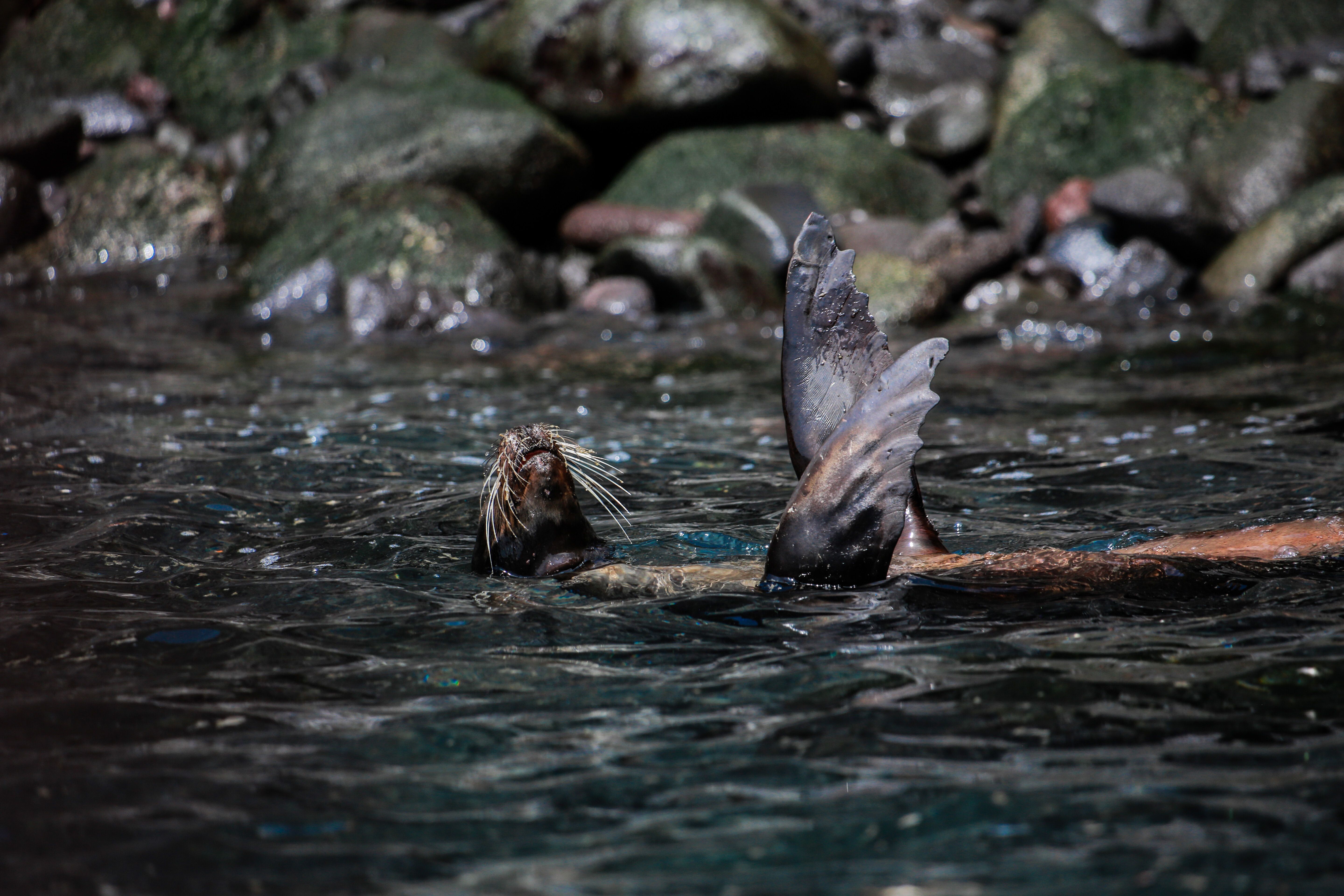 Wildlife from the shores, skies, and waters were the highlights for many. Geese, shags, and even penguins were observed and photographed during the morning Zodiac cruises. Albatross dove down, feeding on a huge bait ball of fish off the point of the bay. Many also saw sea lions and fur seals playing in the waters around the rocky island.