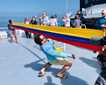 We returned to the ship in time for lunch. Meanwhile, the undersea team explored under the fast ice with the ROV. Soon after, the expedition team, determined to make the most of the weather, deployed the kayaks for a fun afternoon of paddling through these calm, clear, and pristine waters. Little did we know, the day’s excitement was far from over! Upon returning with the kayaks, everything was setup for the polar plunge. Photographers and the expedition team stood ready to assist the plungers in and out of the water.