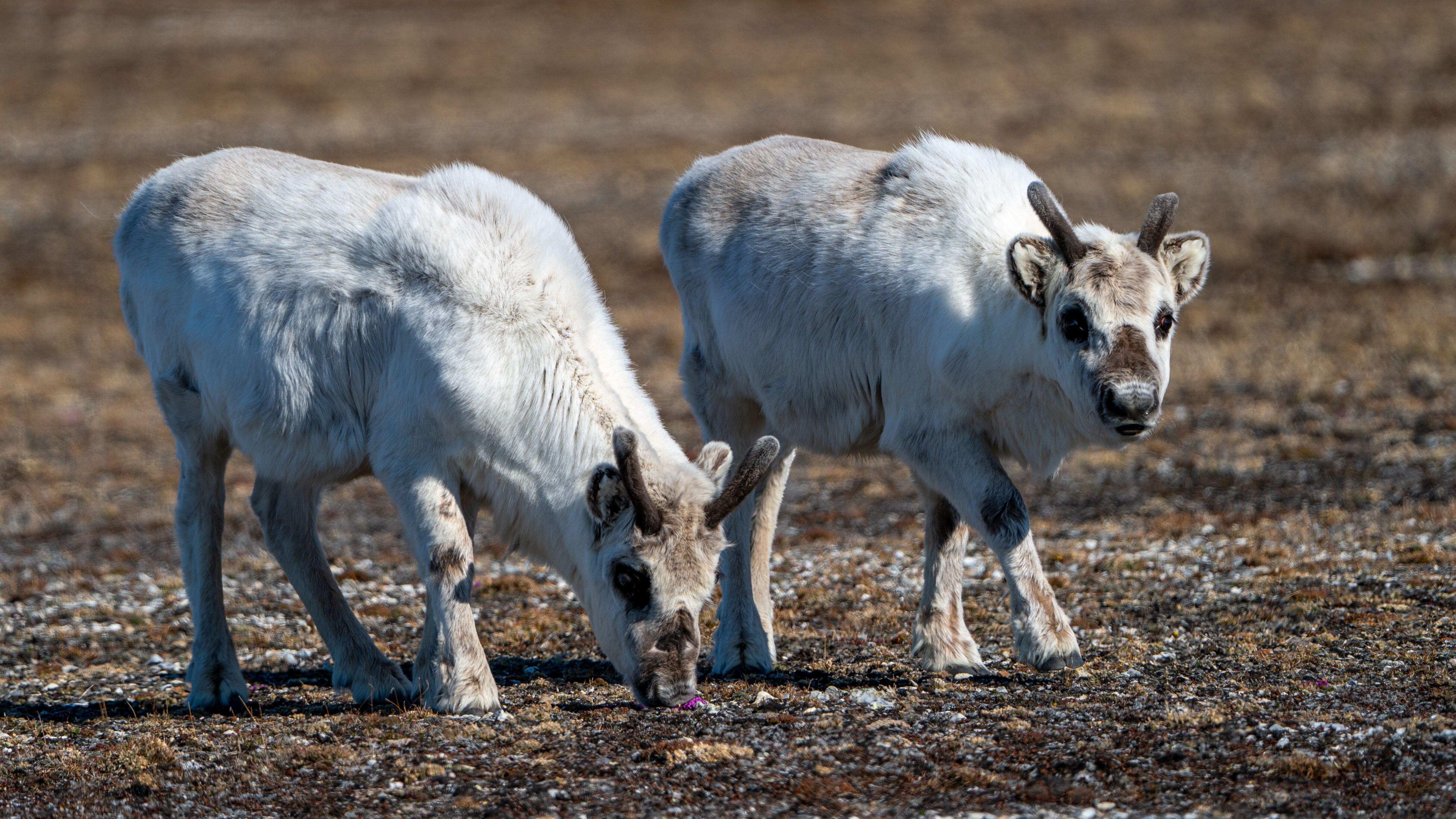 We awoke this morning to the noise of the ship cutting through pack ice. We had been travelling south through the sea ice from Nordaustlandet and we were now going around Edgeøya, towards Russebukta in Storfjorden. The plan for the morning was to make landing here, but ‘uncertainty’ is a concept Expedition Leader Mike emphasized because it is inherent when travelling in the Arctic. The landing site at Russebukta happened to be blocked by ice so we continued along the shoreline until finding a beach free of ice. A kilometer from the beach were over a hundred reindeer grazing in the tundra.