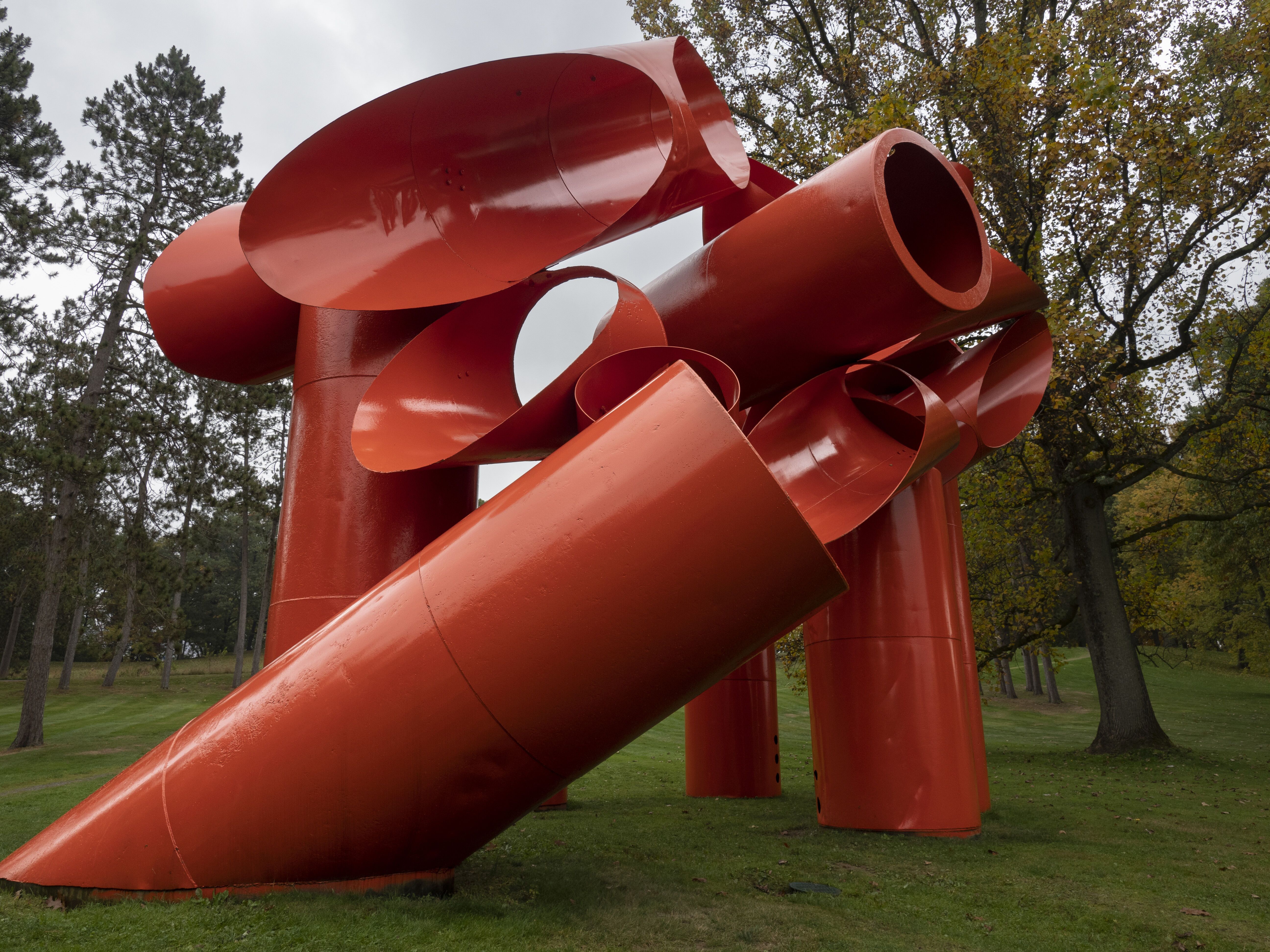 Nestled in the mountains of the Hudson Valley is a unique natural area and open-air museum, Storm King. In this five-hundred-acre sanctuary, guests can visit huge, outdoor installations of sculpture that would be impossible to house in a traditional indoor museum. The artwork is dispersed among the beautiful trees and meadows of the reserve, adding to the beauty and grandeur of the pieces. We walked at our own pace, enjoying both the art and nature. The changing colors of the leaves during this spectacular fall season gave a new dimension to the sculptures in this iconic setting.