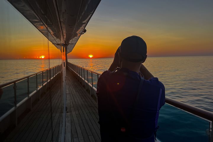 On this day we found ourselves enjoying the last full day of the expedition. It’s a strange thing, being sad in paradise, but we have all become close from the amazing experiences we have had together since leaving Broome, in Western Australia. The thought of no longer travelling together was a glum one. We were no longer a ship full of individuals as we started, but we had become a tight group of people on an expedition that took us through different times and worlds. We had travelled through the region of the Kimberley Coast, which even with all attempts, the beauty couldn’t quite be put into words. Then, travelling north, we are ending in the vastly different but equally beautiful Indonesian Islands.
