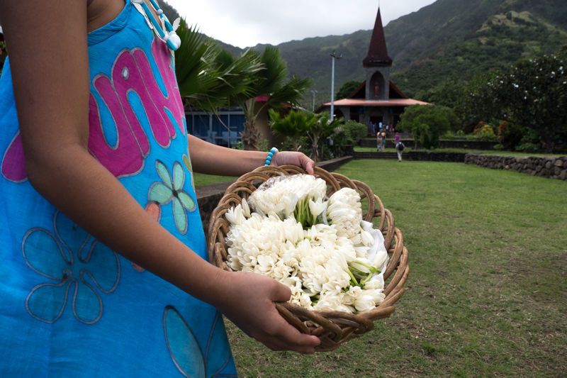 It’s our last day in the Marquesas, and we were able to fit in a little bit of everything. We began in Vaitahu, the main village on this island, where some of us went in search of the Marquesan kingfisher (found it!) and others went to the stone Catholic church for Sunday mass. A large wooden statue of the Virgin Mary looks out over the village, and even those of us who did not attend the service got to hear the beautiful music flowing out through the open windows and down into the streets of town.
