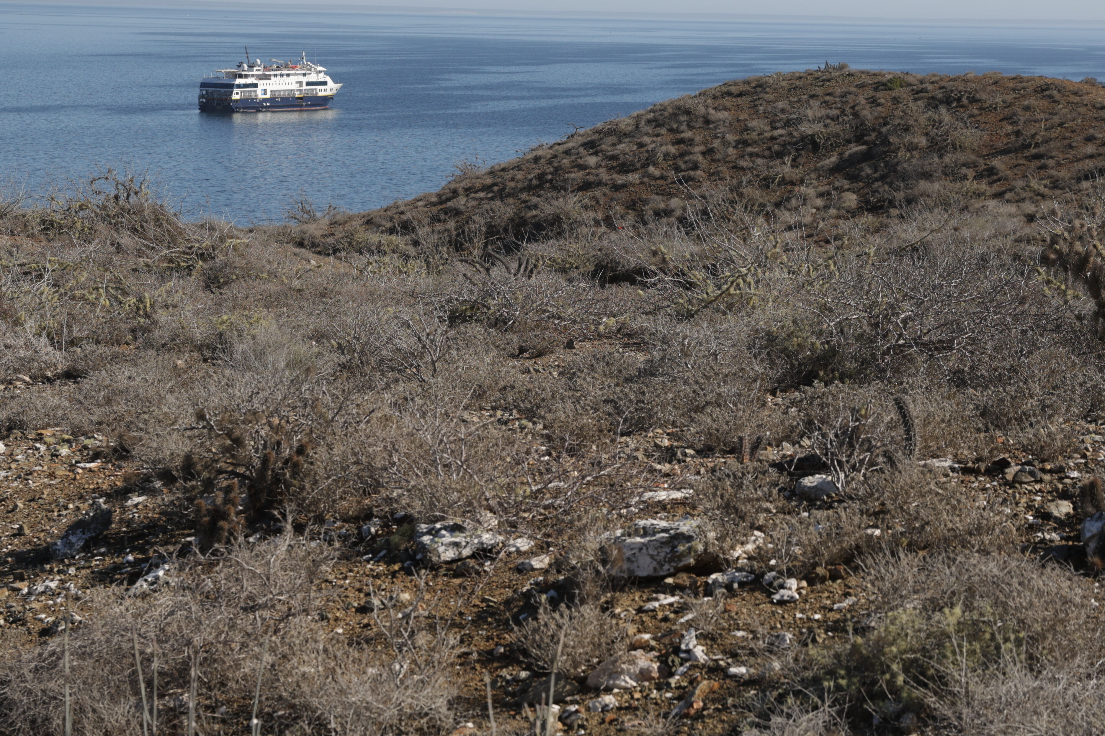 A gull flew by the rising sun to begin our day. We rounded the end of the Baja Peninsula and sailed into the Pacific. Soon after the dawn brightened into day, the first whale blows were seen. Bow decks filled with whale enthusiasts pointing at humpback whales diving and breaching all around our ship. We encountered a heat chase: about seven males thrashed through the water to gain the prime location next to a female for possible mating.