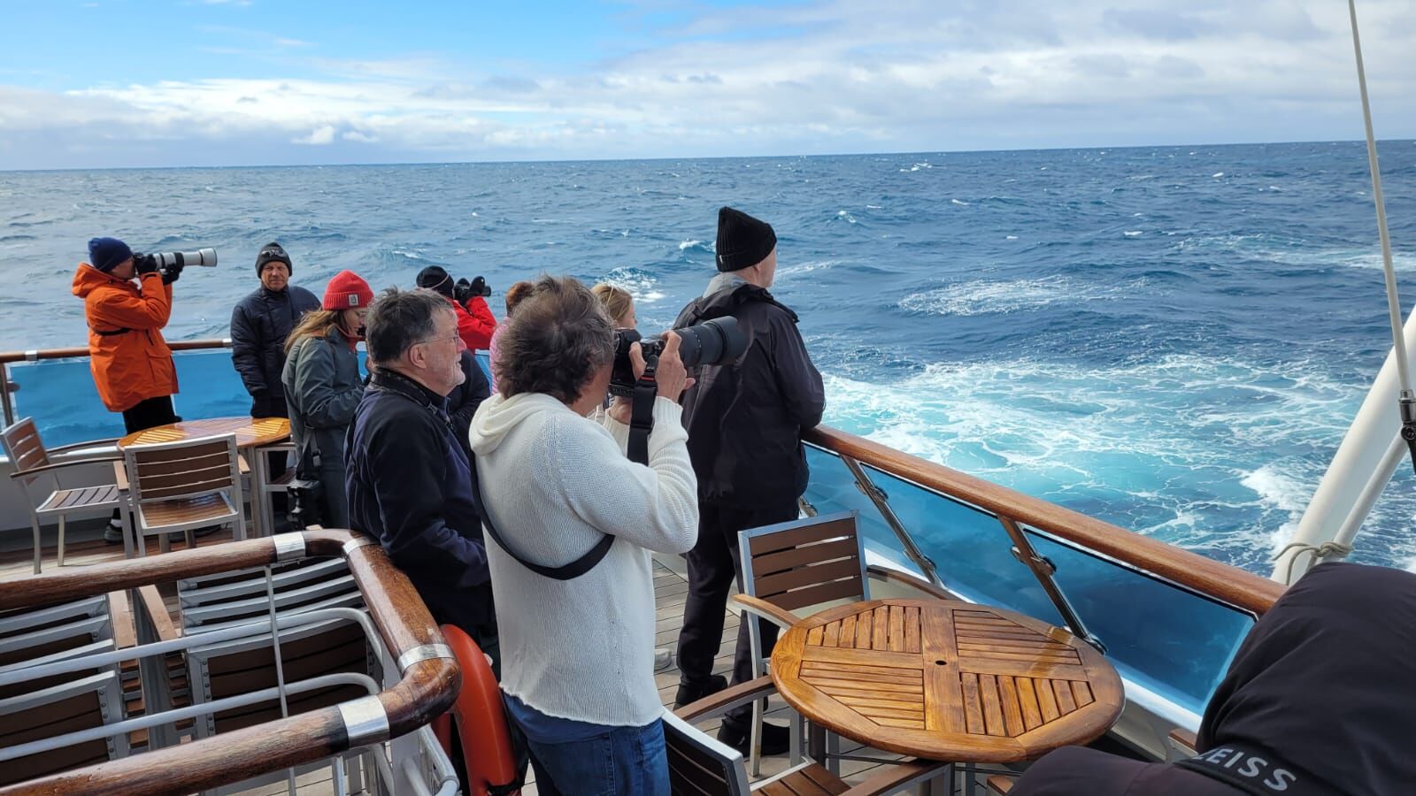 On the second full day of our expedition, we awoke to broad swells highlighted by speckled sunlight streaming through broken clouds. The wind and seas diminished as National Geographic Endurance made its way south across open water toward the southwestern arm of the Antarctic Peninsula. During the morning, we were treated to a gripping lecture by Stephen Fisher on the heroic exploits of those who first located and then explored the vast continent of Antarctica. This was followed by Deb Goodwin who described the fascinating complexities of the Southern Ocean, which serves to isolate the glacial mass of the White Continent. As National Geographic Endurance continued south toward the Antarctic Circle, we had a terrific lunch that included the option of a delicious pasta bar in C. Greens dining area on deck 8. In the afternoon, we continued south while completing briefings and a lecture by Eva Westerholm that introduced the iconic penguin. The day ended with Captain Oliver’s introduction to the ship and the ship’s officers followed by a delicious dinner.