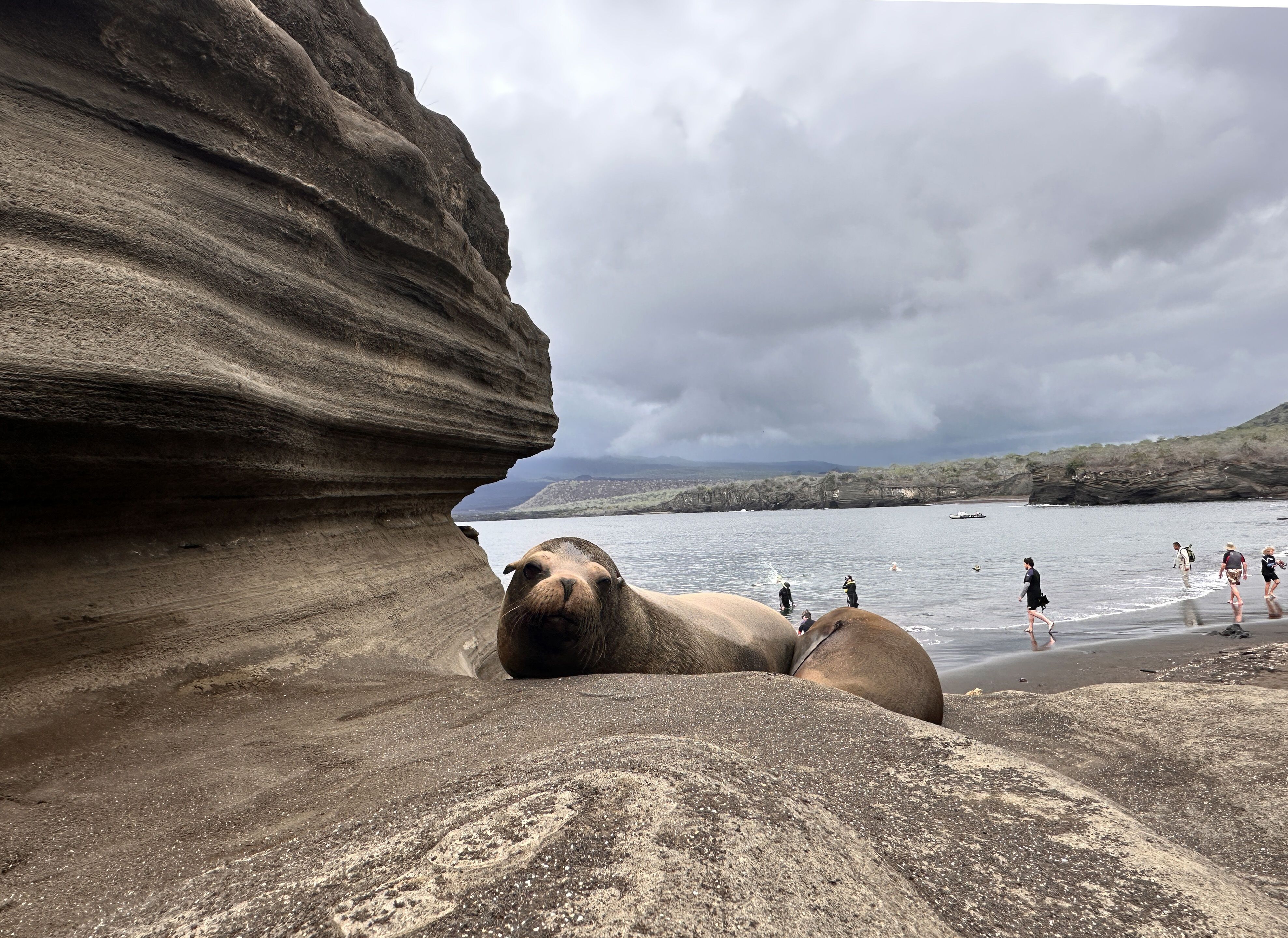 Later in the morning we were introduced to our expedition team, followed by a presentation from National Geographic expert Drew Rush. While Drew was just wrapping up his talk on his wildlife conservation photography projects, we were interrupted by an announcement. There was a sighting of long-finned pilot whales spotted one mile ahead of the vessel! We hit pause on the lecture, and we all put on coats, grabbed our hats and cameras, and headed to the bow and outer decks. We got to experience a group of approximately 20 animals including some young calves who all swam right next to the bow of National Geographic Endurance. It was an experience we will never forget.