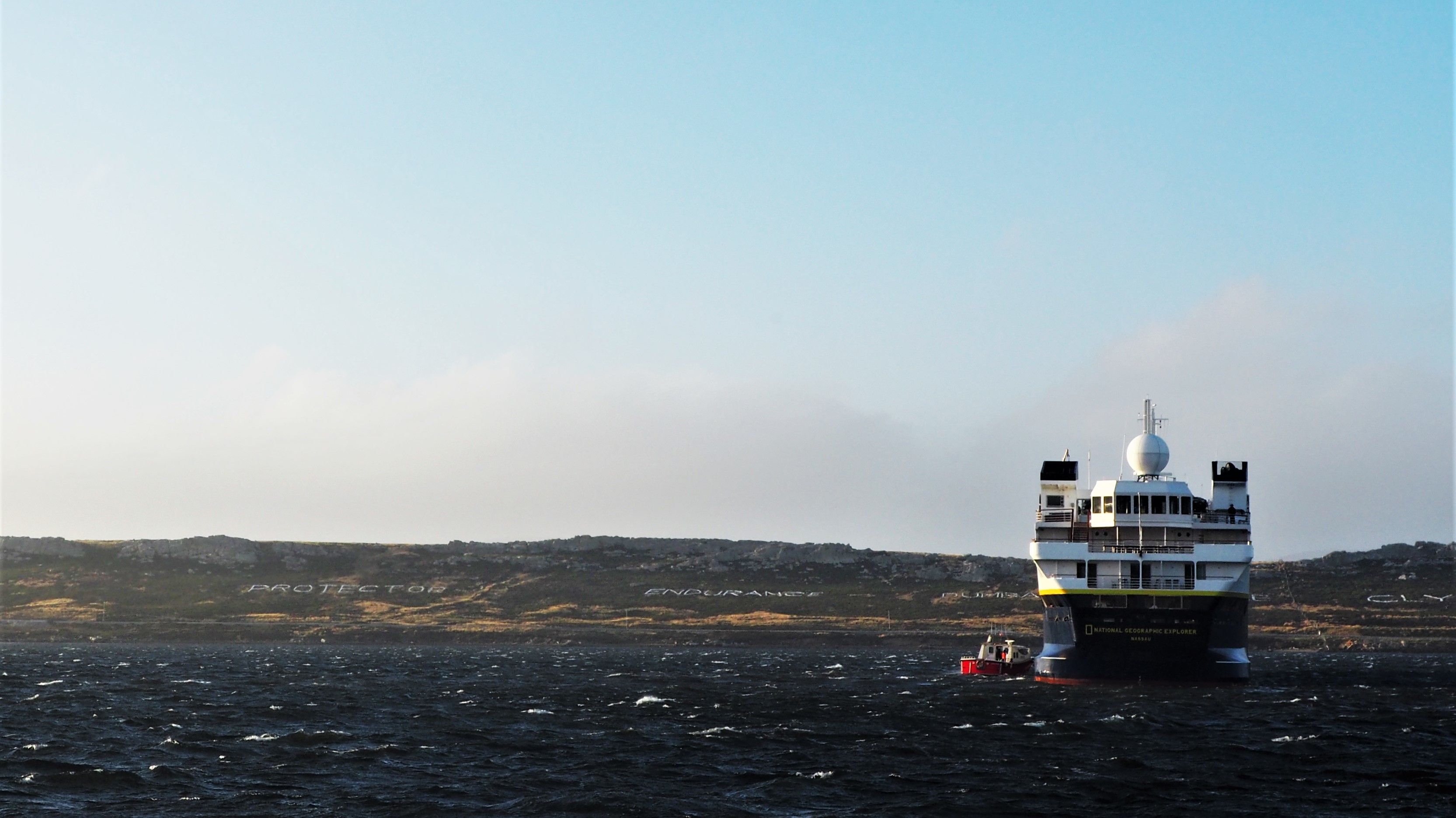 This morning we awoke to the relative calm and silence of the outer harbor at Port Stanley, Falklands. After a long journey across the increasingly turbulent and gusty Southern Ocean, the sight of dry land was very welcome. However, with gusts of wind up to 60 miles an hour forcing the port authorities to shut the port, we put our planned morning activities on hold, and remained anchored in the outer harbor.