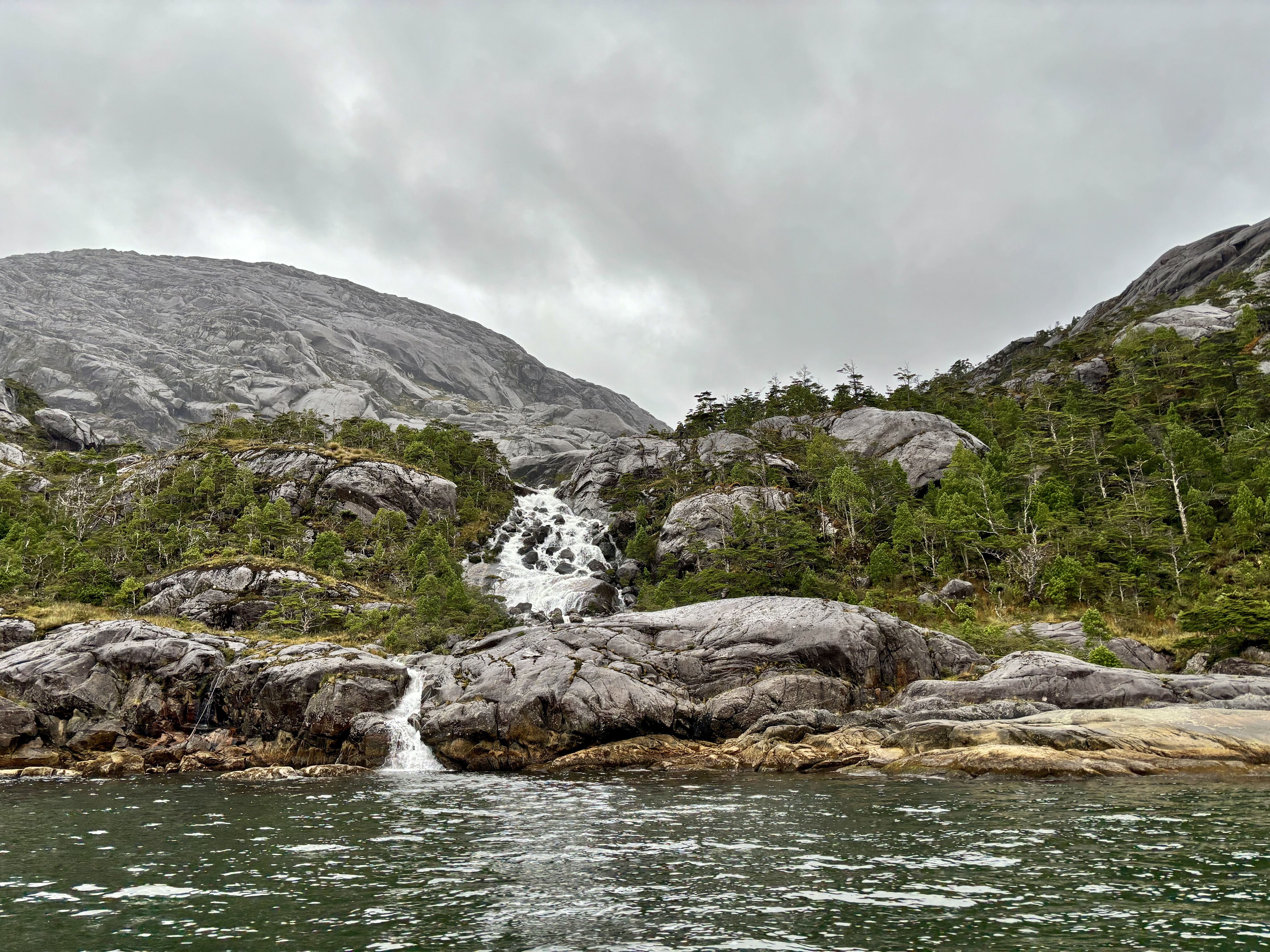 The wind coming down Montañas Fiord was brisk and energizing as we hopped from the Zodiacs onto the gravel forming Bernal Glacier’s terminal moraine. This very pretty hike had a bit of everything, from tasty chaura berries and Magellanic fuchsias in bloom, to little forest birds and more than enough rocks to keep this geologist happy! We ended right at the ice face, one of the very few places in the world where you can safely get this close to a glacier.