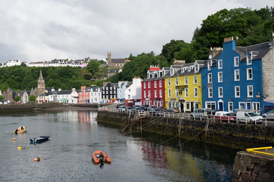 Late morning, the Lord of the Glens set sail out into the open ocean, passing Ardnamurchan Peninsula with its lighthouse perched on the most westerly point of the British Isles. Gannets and manx shearwaters flew past as the ship traveled north, arriving at the Isle of Eigg just after lunch. An Sgurr, the dramatic rocky cliff “prow,” dominated the island’s horizon and a local bagpiper greeted us as the boat pulled up to the pier. One group of hikers set off for a scenic viewpoint below the prow, while another walked at lower elevations with Carol. Many took the opportunity to visit the Village Hall, where a music festival was taking place. Eigg is a community-owned estate, bought in 1997 by the Isle of Eigg Community Trust, a partnership between the island residents, the Highland Council, and the Scottish Wildlife Trust.