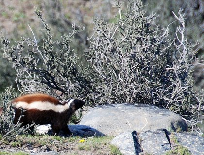 Torres del Paine National Park was created from a large estancia, owned by a keen Italian mountain climber, Count Guido Monzino, who wanted to return to his homeland and offered the land to the Chilean state under the condition it was established as a national park. Nowadays it is for sure one of the most remarkable sites on land anywhere in the world. Not only is the scenery outstanding, with the high peaks, azure blue lakes with melt water from the huge Patagonian ice cap, but it’s also rich with wildlife. As we approached the park in the early morning, hundreds of guanacos and a few lesser rheas were seen along the road, condors were sitting on hills waiting for the Patagonian wind to pick up and as soon it arrived we saw them soaring. The park holds many species of birds, mammals and plants unique to southern South America. It is not often that a skunk creates passion but as a Humboldt’s hog-nosed skunk made its way toward us, people got excited. The puma is of course the ultimate predator here in the area but unfortunately, like most big cats, hard to find. We searched hard but were not lucky.