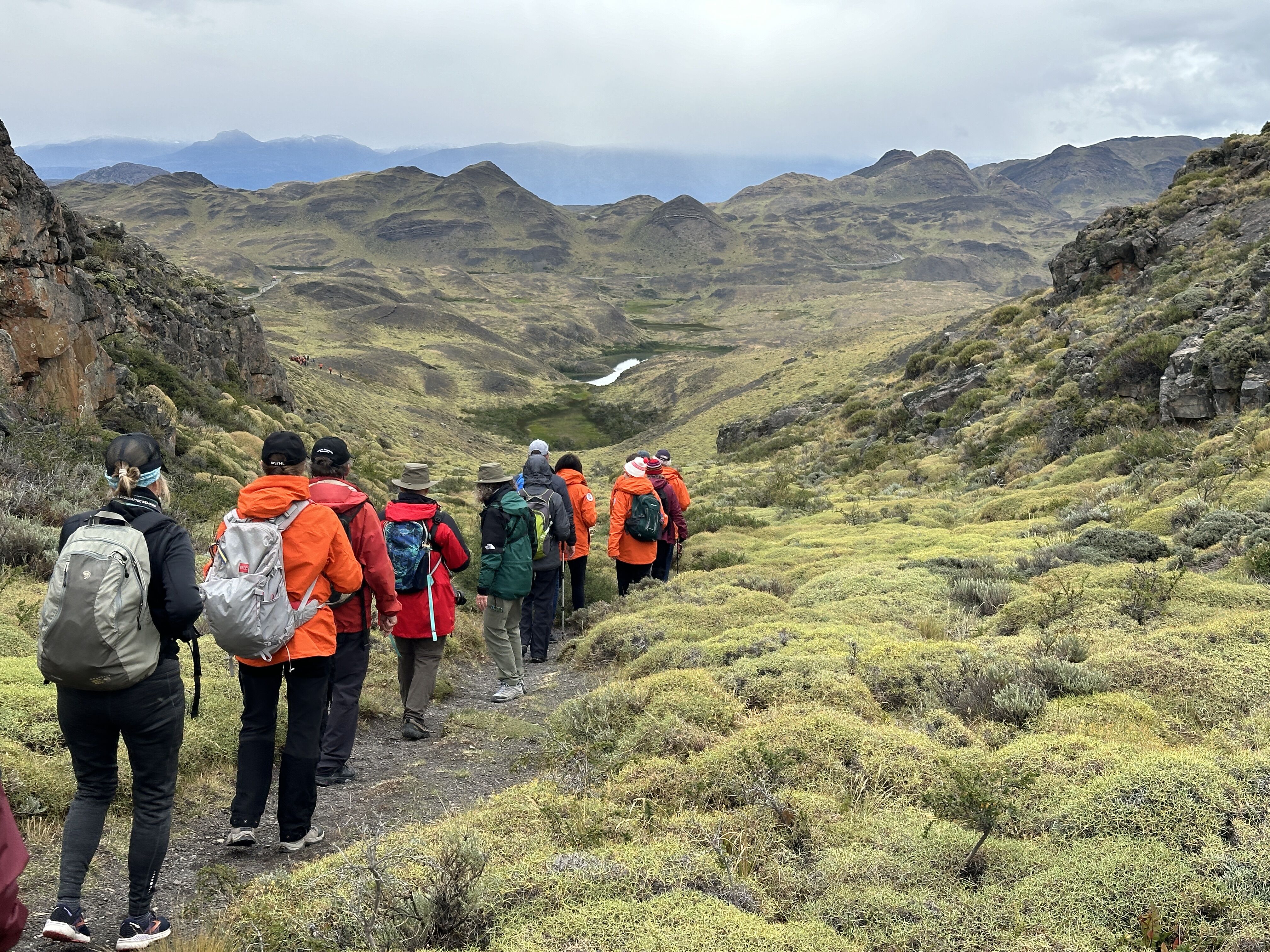 Hikers set off on trails that wind through dense shrubby, herbaceous plants. As we hiked, the mighty granite spires rose in the distance with their snow-capped tips piercing the sky and condors soaring overhead. The weather shifted dramatically, with bursts of sunshine followed by gusty winds, adding to the raw beauty of the terrain.
