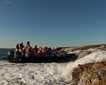 Pulling anchor, we headed up Tracy Arm through the steep-walled, glacial cut granites and quartzite intrusions. Loading onto the inflatable boats, several groups ventured up toward the toe of the Sawyer Glacier. Pushing seaward by the mass of ice of the Stikine Ice-field, snow falling atop the ice-field may take between 200 and 500 years (depending on one’s information source) to reach the calving face of the ocean. We sat mesmerized in our expedition landing crafts safely watching tons of ice tumbles into Tracy Arm, sending swells of water toward our boats and slowly converting the geologic to glacial silt deposition. Conversations related to rates of glacier ablation as a function of climate change ensued, with guests learning that while glacial ablate (as they always have) the real testament of how quickly ice-field melts comes from research measuring annual shifts in snow accumulation as compared snow melt. The rate of glacial movement then becomes a function of snow converted to water that seeps to the base of the ice field and may or may not accelerate the migration of the ice field to the bay.