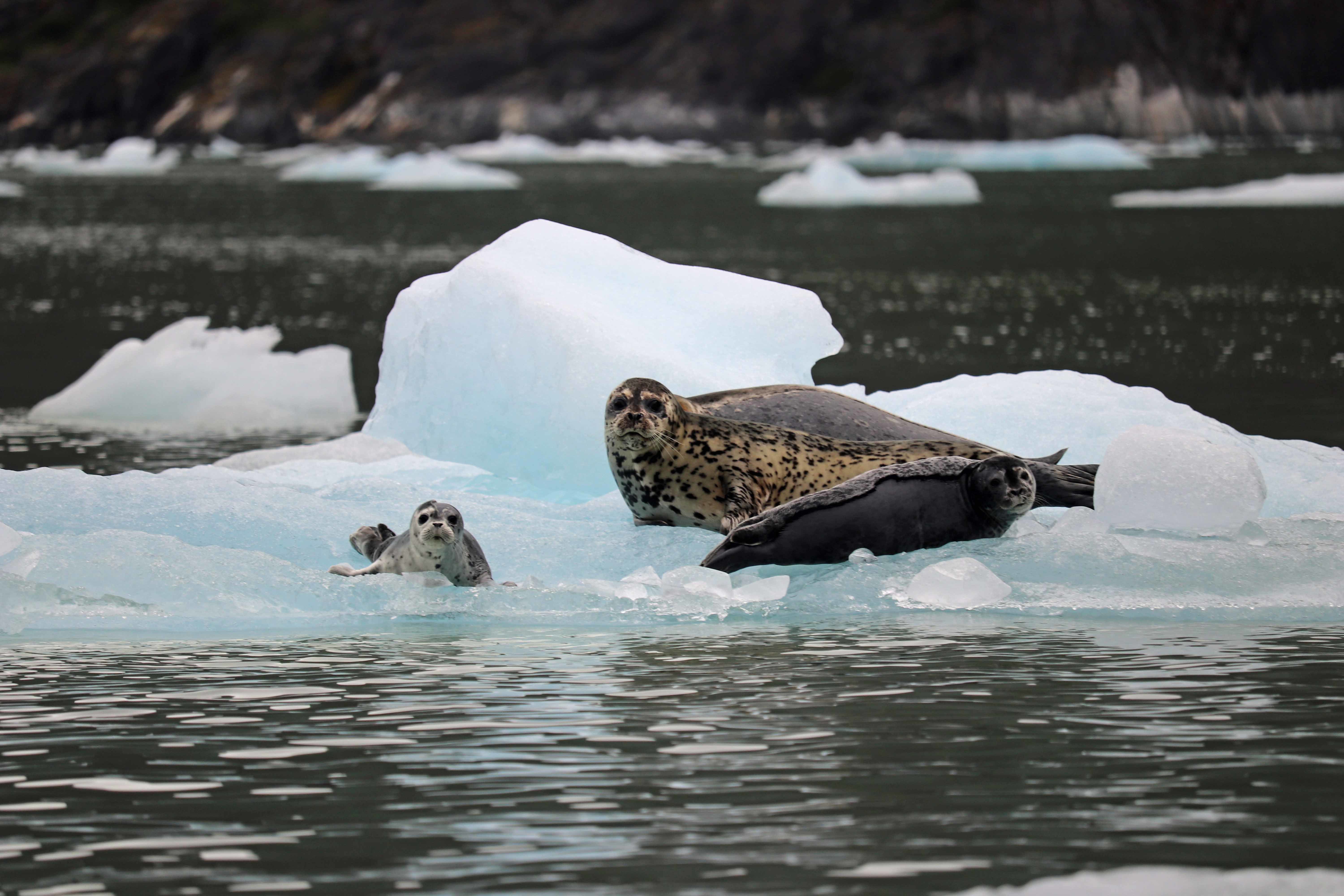 It was pup season in Alaska and many female seals were gathering in the safety of the glacier ice to give birth and nurse their pups for the next six weeks. As we cruised toward the glacier in expedition landing craft, we spotted many adorable seal pups with their mothers.
