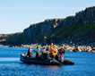 Immediately after lunch, we rounded a bend around a massive glacially polished mountain and were greeted with the cheery blue face of the Dawes Glacier. The first round of adventurers loaded up into our trusty expedition vessels and headed out to get a closer look at the icy display. As we wound our way further up the fiord, we stopped to get a closer look at the waterfalls spilling out of the hanging valleys. Harbor seals played in the spray below the waterfalls while arctic terns danced above.