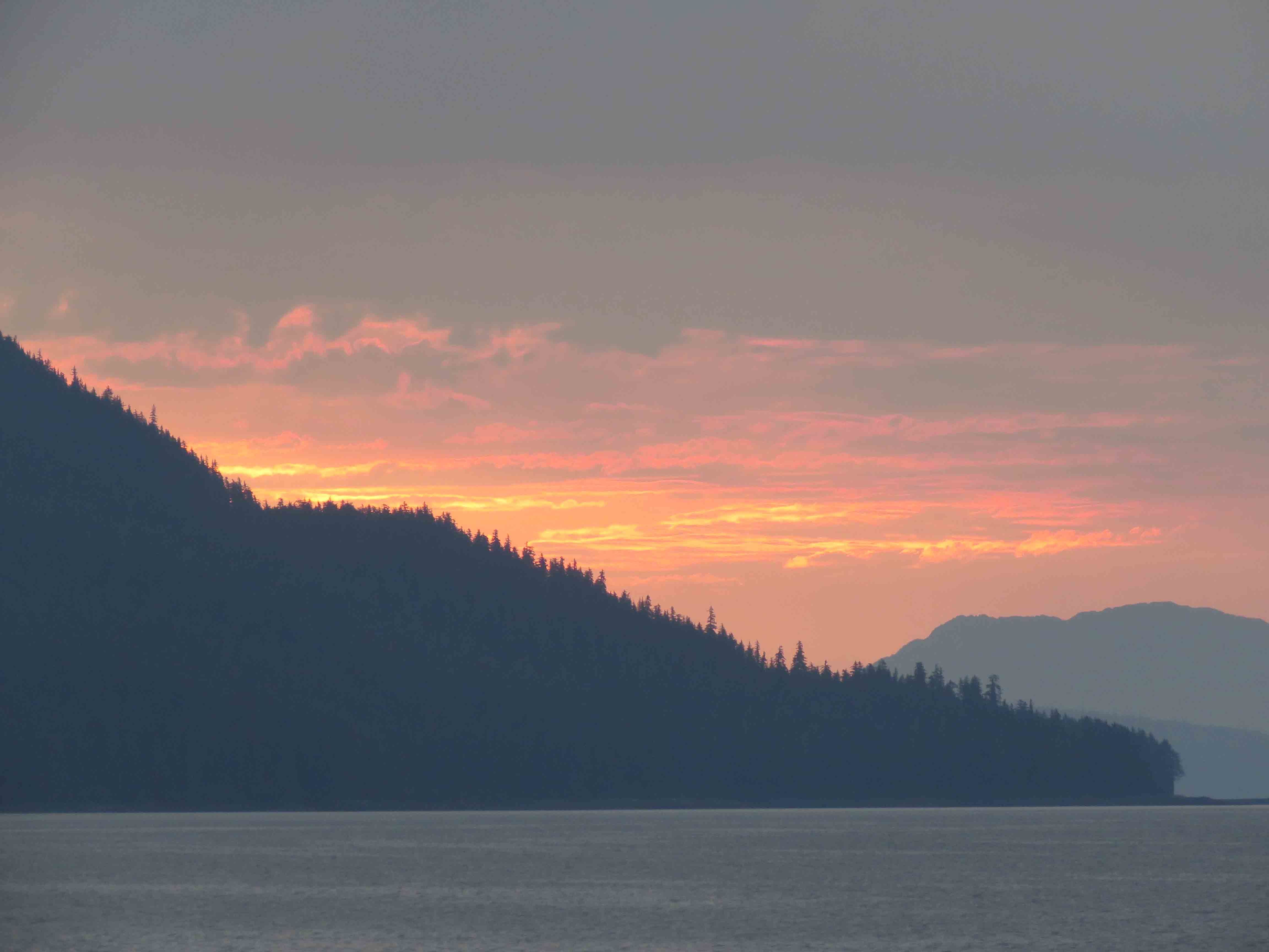We had a phenomenal day at Glacier Bay National Park. The sun was out, as was the wildlife. The bow was the place to be. Please enjoy the dialogue of the day from the bow: Ah, Lovely Sunrise. Dall’s porpoise! Killer whales! Oo, swans! Calving center! Bald eagle on ice. Brown bear, That’s a big one. Bald eagle in nest. I wish someone would find me a marmot. Marmot at 10! Where? Do you see that crack in the rock? To the left you’ll see a tree. Now go below the tree to the round rock. 6 goats plus bonus outcast goat. Low goats on ledge, wedged in nicely. Goats, goats everywhere, and a marmot here or there. Two puffins. Nice beak action. It’s like “I Spy” out here. Low goat at 11. Oh, really low goat. Oh, yea that’s a fella. Goats looking right at us, folks, good goat face. Oh, and whale spots at 1. Oh boy, I’m exhausted. That’s ok, take it one goat at a time. There’s a spout off the point. Classic humpback. Oh, glaucous winged gulls nesting at 2. And otters! Fly by puffins! Porpoising harbor porpoise! Needless to say, we had a good time. Photo by Shannon Malone