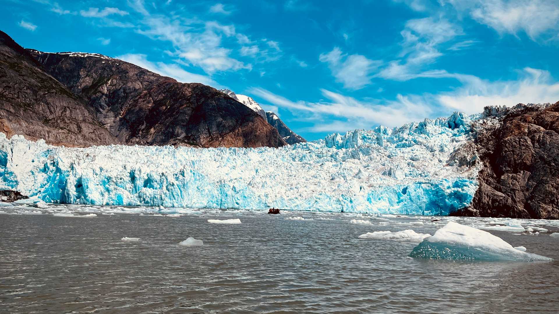 For the fourth day in a row, we awoke to blue skies and a beaming sun. It’s not often that you need sunscreen in the temperate rainforest of Southeast Alaska, but the mirror-like conditions inside the protected Tracy Arm Fjord made for perfect paddle conditions, so SPF was recommended.
