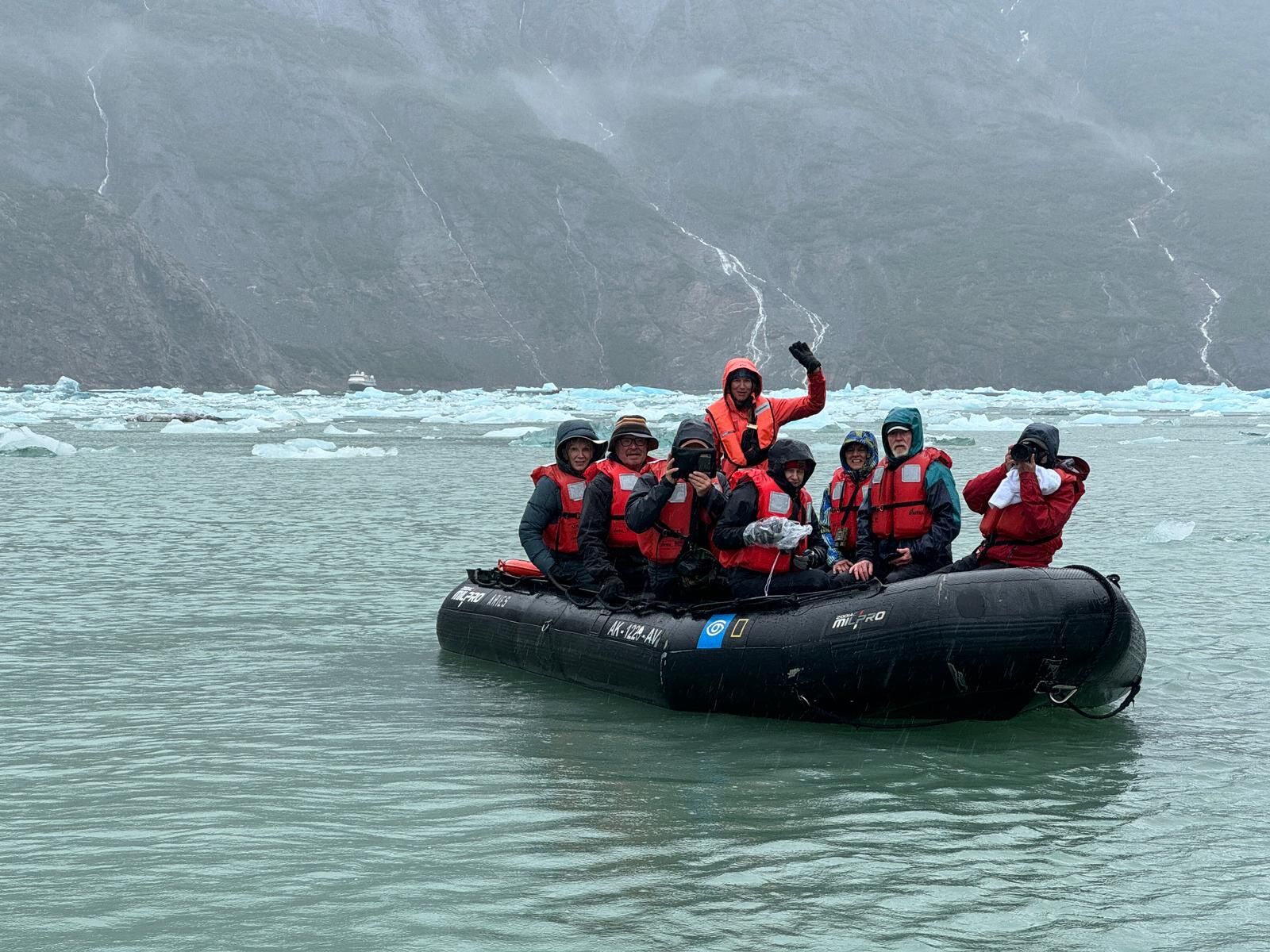 The last full day of our expedition brought us to Tracy Arm-Fords Terror Wilderness. Established in 1980, this protected area encompasses 653,179 acres of coastal mountains and glacially carved fjords. The moment guests stepped out of their cabins, they were in awe of the vast scenery. Following breakfast, we headed out on Zodiacs to get a closer view of South Sawyer Glacier. The grey sky and low clouds made the blues of the glacial ice appear to glow. As we sat in silence listening for “white thunder” coming from the glacier - an indication that a calving event has occurred - an eagle flew overhead and landed onto the glacier, perfectly completing the picture. A light drizzle brought the fjord to life, giving us the chance to kayak amongst waterfalls that seemingly fell from the sky.
