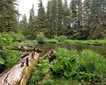While rubbing our eyes and sipping our coffee, this morning we were called onto the bow for the encounter we had been waiting all week for: an American black bear in the intertidal zone, enjoying its breakfast. As we quietly watched from the ship, this bear munched on the barnacles and rockweed that was not quite submerged as the tide slowly rose. After about half an hour, we turned away, continuing into Tracy Arm fjord. Once again enjoying a spectacular lack of rain, the sun shone on the sheer mountainsides and sea foam green water that we would follow until it ended 22 miles later at the face of South Sawyer Glacier. This fjord is one of two arms of the Tracy Arm Fords Terror Wilderness Area, a pristine wilderness covering over 600,000 acres within the Tongass National Forest. For our morning excursion, National Geographic Sea Lion sent us exploring the last few miles in to the face of the glacier; it towers 200 feet above the surface of the water and continues 21 miles back to the Stikine Ice Field. On the expedition landing craft, we cruised around, hoping to see wildlife in the area, and our expectations were exceeded. Rounding one corner, we found a large family of mountain goats with their kids on the mountainside. The next corner exposed hundreds of harbor seals and their pups hauled out on icebergs, nursing until the pups are large enough to venture into the open ocean on their own. There was even a harbor porpoise cruising quietly through the water.