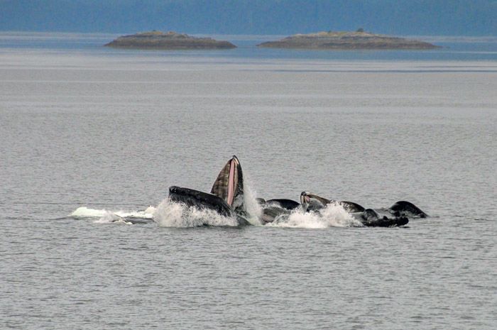 We rise in the morning to our arrival in Holkam Bay, the entrance to Tracy Arm in the Tracy Arm/Fords Terror Wilderness Area. Our first sightings are two black bears foraging barnacles in the steeply sloping intertidal zone. We carry on through drifting blue icebergs and wend our way through turns and elbows until we reach the South Sawyer Glacier. After breakfast, we leave National Geographic Venture to board our Zodiacs for an exciting ride toward the glacier’s face, visiting a family of grazing mountain goats, raging waterfalls, and resting harbors seals. The calving of the glacier’s face is breathtaking, and after lunch we engage in a polar plunge in Williams Cove before making our way back to Stephens Passage in the evening hours.
