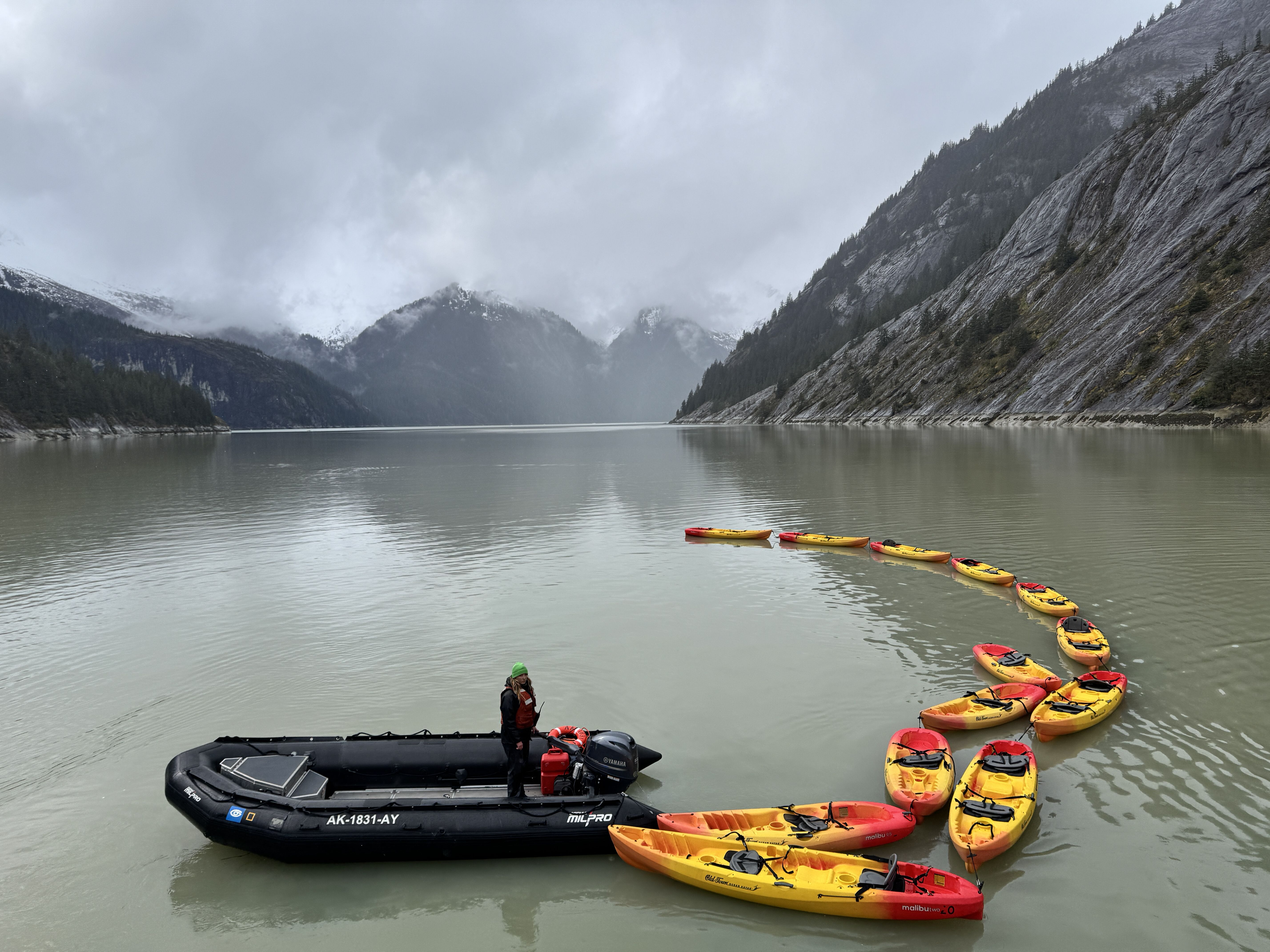 During the last ice age, thousands of feet of ice covered this entire area. When the retreat of ice began, these fjords were carved by that ice. This allowed sea water to enter, offering excellent cruising for many ships. National Geographic Sea Lion spent the day cruising and dropping in many of our kayaks and Zodiacs, so all had a chance to paddle and/or cruise this picturesque waterway.