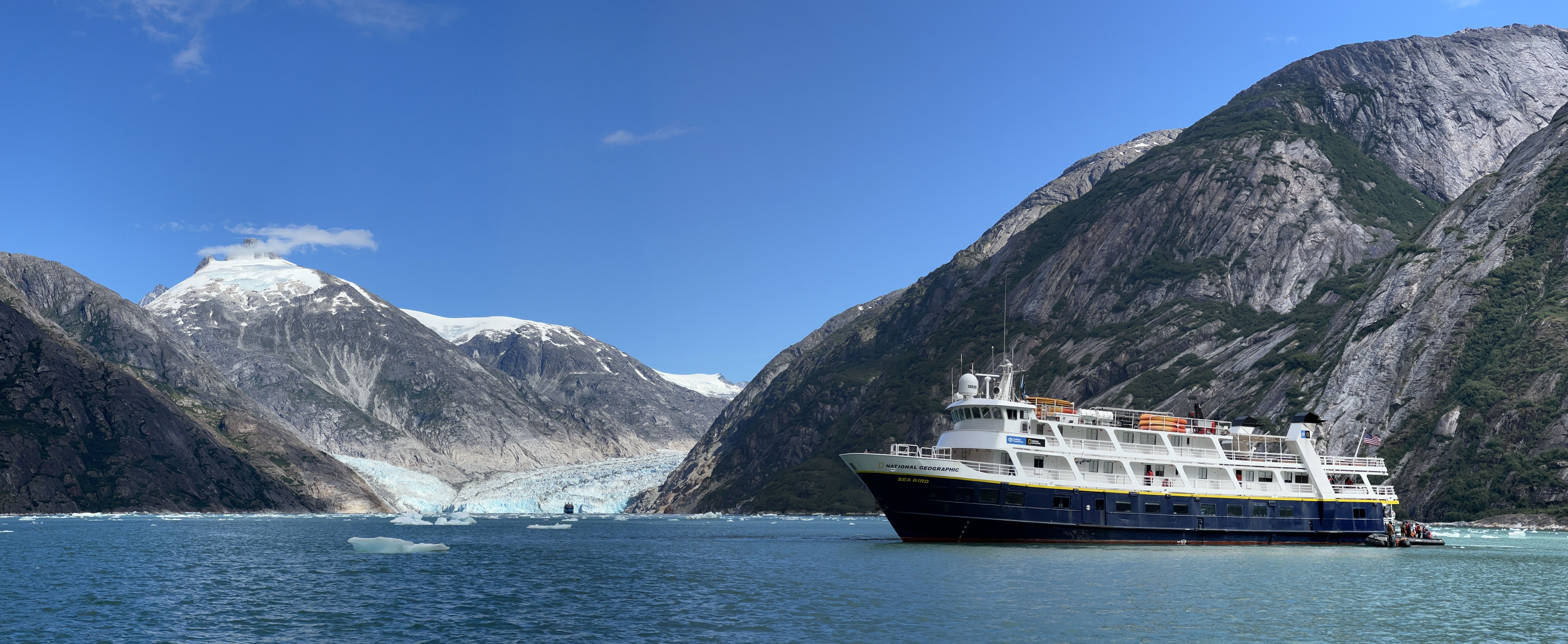 What a glorious day in Tracy Arm-Fords Terror Wilderness on our final day of this journey. We woke to beautiful clear skies as we passed Sumdum Glacier in Endicott Arm on our way to Dawes Glacier. As we sailed up the fjords towards the tidewater glacier, we were treated to spectacular waterfalls cascading into the blue water. Our first stop was a very low tide in Fords Terror. We could see rushing currents of the water exiting this fjord, making it impossible to proceed upriver due to the current. After lunch, we made it to Dawes Glacier, where we had our day’s activities. All guests were treated to a close-up view of this spectacular tidewater glacier with calving ice and plenty of harbor seals hauled out on ice floes. What a perfect way to end this epic expedition.