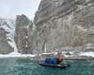 In a jolly mood, our guests enjoyed lunch while showered with sunshine between the mountains. All the while, our captain was repositioning the boat for the Polar Plunge! That is right! We only had five brave volunteers, but all five jumped into the icy waters (43 degrees) and swam beneath a flowing waterfall. The pre-dinner glacier presentation by Dr. Steven Cunha was only just finishing when bears were spotted on the beach. What a lovely surprise for our guests before they filled their tummies.