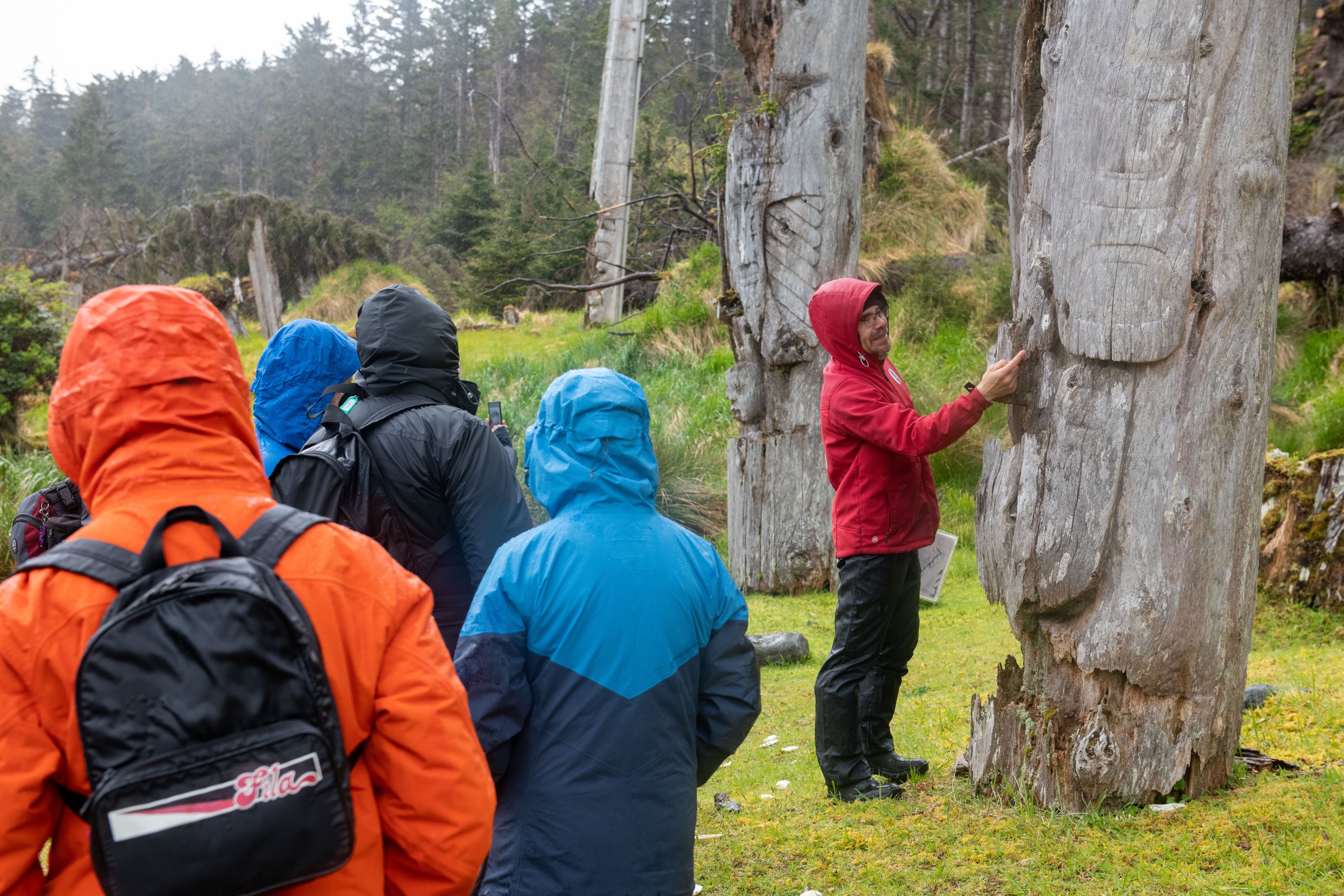 The walls of the fjord were thousands of feet in height and sparsely decorated with the beginnings of plant communities all trying for a foothold in a very difficult environment. Plants are an amazing group of living matter. They often change their growth pattern to survive and flourish. For example, a tree that might grow tall in a coastal temperate rainforest 20 miles way grows here as a crawling dwarfed shrub hugging rock walls, nearer to the face of the glacier. We were traveling in a reverse botany time tunnel going back to the beginning – when plants first colonized this Northwest Coastal region of North America after the great retreat of a massive ice sheet that moved towards the Arctic.