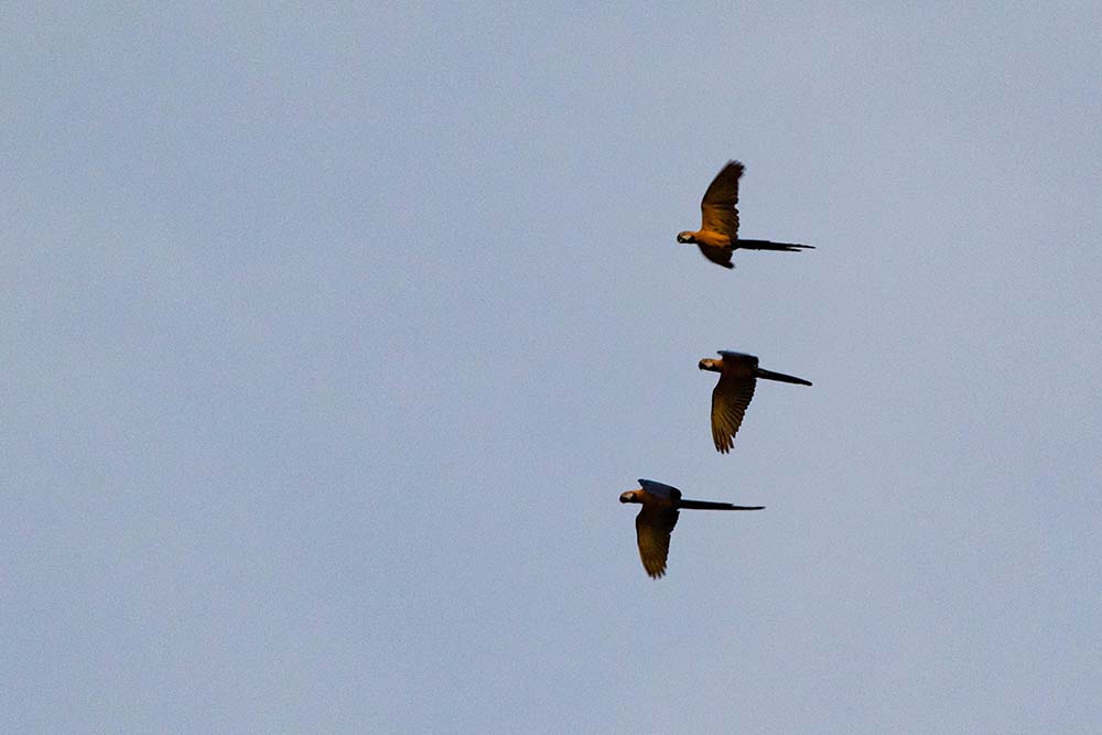 Today we started our activities before breakfast along the shore of the Ucayali River. We are reaching the furthest points of the Pacaya Samiria Reserve as we make progress navigating upstream we find new and interesting life forms. This morning we spotted several types of parrots and macaws still perching on the trees they spent the night. The most the most wanted bird in this region is the blue and yellow macaw that nests on dead palm trees. It took some minutes of exploration to find them perching on a large tree. They are very noisy!