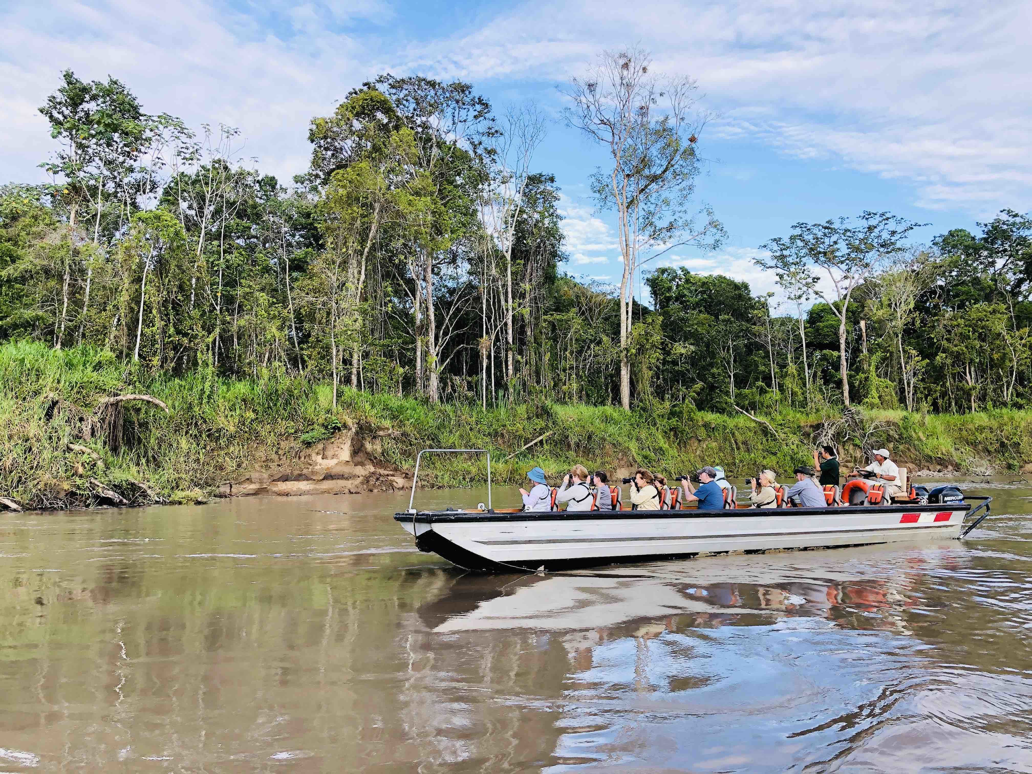With the day’s first light our skiffs departed to explore the banks of the Ucayali River. As the sun rose above the clouds the forest came to life, full of the sounds of many birds waking to fly above the canopy and across the river.