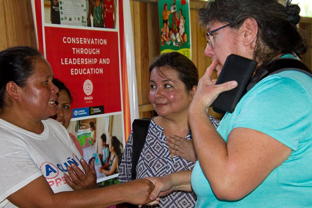Leaving Delfin II at 06:00 for our morning skiff ride, we explored the Marayali River. The birds were up and working on obtaining breakfast while the three-toed sloths chose to sleep the morning hours away. On our way back to the ship, we encountered a snail kite having its namesake prey for breakfast right in front of us! The rest of the morning was spent at Amazonas Village getting an introduction to life along the river. Demonstrations of how to get sugar water out of cane, how to make and dye fiber for baskets and other items, as well as food preparation were given. We chatted with children who had monkeys as pets! Our evening was topped off by a toast to the beginning of the actual Amazon River, where the Marañon and Ucayali Rivers converge. Salud! This is my final daily expedition report as a full-time Lindblad employee. I am retiring after 21 years as a National Geographic certified photo instructor and naturalist, ready to begin a new life of travel and exploration. I want to give a big thank you to all of those Lindblad guests whom I have traveled with over the years, and I will leave you with these words: Travel as often as you can, as far as you can, for as long as you can. May God and your luggage be with you!