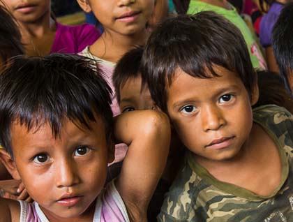 After breakfast we visit a village accessible by skiff only during the wet season. The children welcomed us ashore to walk around the settlement, meeting the locals and visiting the primary school where we were treated to a welcoming song and questions from the children. We presented the schoolteacher with supplies donated by our fellow guests. Kids are kids and we have fun with them as they smile for our cameras.