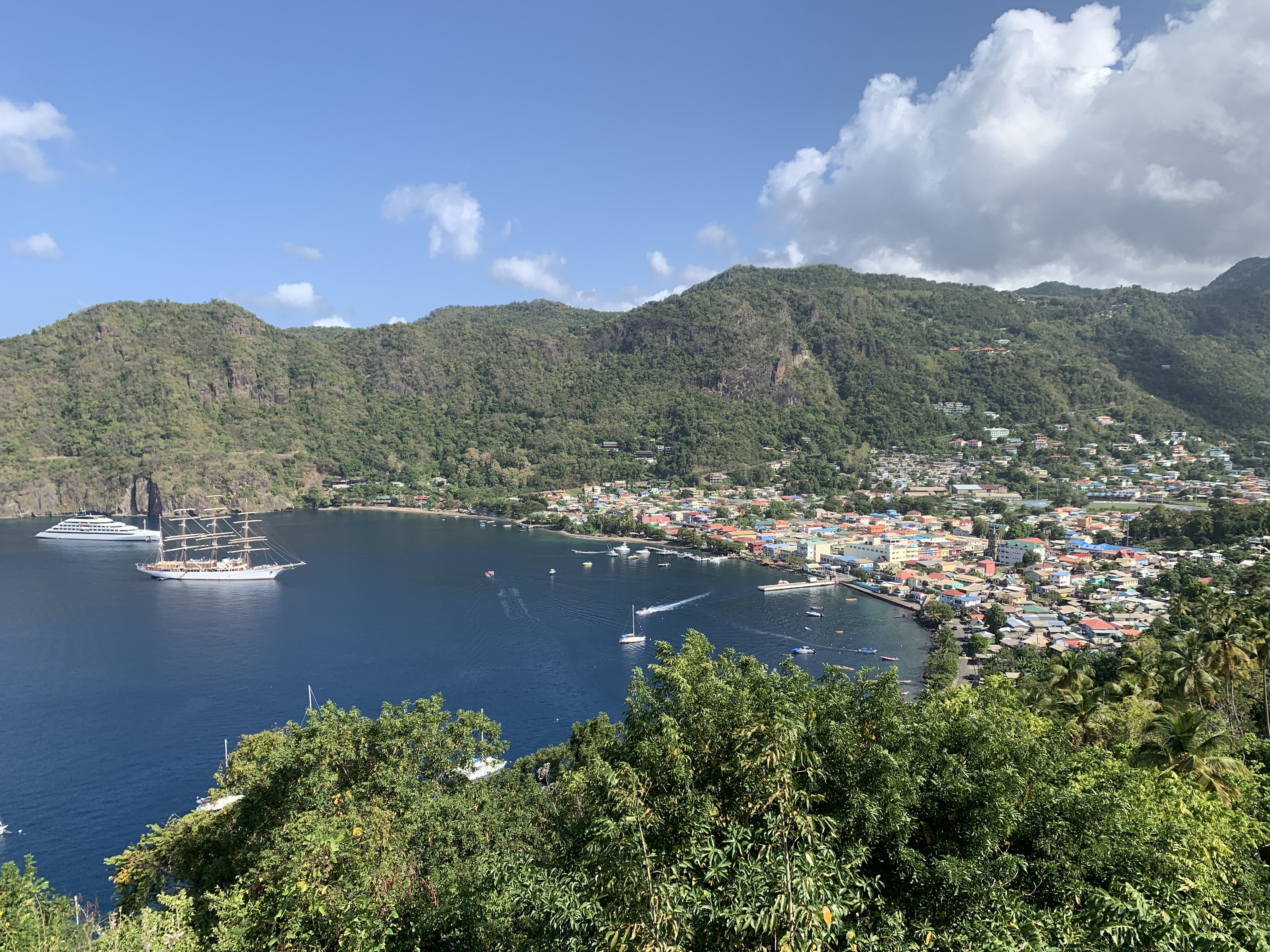 After a beautiful first evening of sailing, we awoke to a gentle breeze in the lower sails, navigating between St. Lucia and the sound end of Martinique. The breeze filled in as we turned the corner and headed north toward Dominica. The captain and crew spent the morning setting the remaining sails and giving an engaging talk on weather, rigging, and some of the uniquities of Sea Cloud. We filled the remainder of our morning with a snorkel safety briefing and engine room tours with the chief engineer.