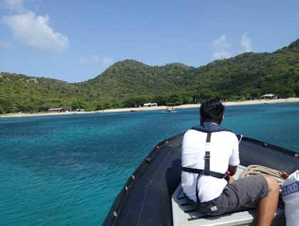 Lunch was on the lido deck, and after lunch we prepared for our visit to Chatham Bay on Union Island. Few places today can be called pristine tropical paradises but Union Island can legitimately be called that. The island is one-mile-by-three and has two villages, Clifton and Ashton. The total population of the island is 3,000 and almost everyone lives in the two villages. Our Captain expertly anchored us in Chatham Bay and we boarded Zodiacs to take us for the short ride to the beautiful gleaming half-moon beach of Chatham Bay. Palm trees, tropical almond, and sea grape gently moved in the breeze. On arrival on the beach those of us who wished to snorkel followed Pati and Max and the swimmers remained with Tom Heffernan.