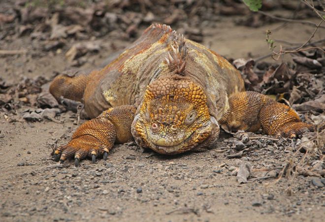 Not too far along the trail we encountered both species in the same area. The giant tortoises of Alcedo Volcano find this area suitable for nesting and the large iguanas call it home. Both species are vegetarians, and quite large.