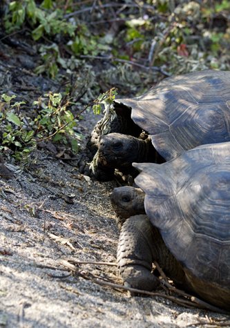 But that is not the only thing to see here. Our walk took us inland where we were able to spot many of the large land iguanas leaving in this area as well as some giant tortoises, our first giant tortoises in the wild. Vegetation was still green, and both land iguanas and tortoises were enjoying feeding on fresh plants. They all seemed completely relaxed in our presence. There was lots of activity with the Darwin finches, as is the time of the year they are all busy nesting and reproducing. The morning was hot and humid but very rewarding, especially at the end of our long walk with a refreshing swim at the beach.