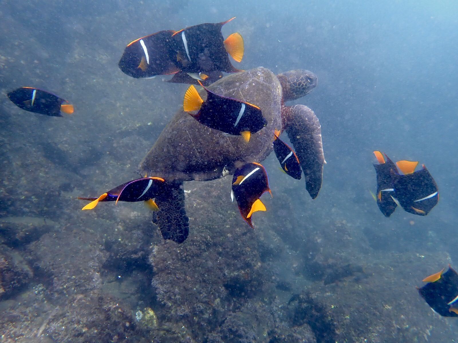 We started the day with excitement as we landed on the beautiful, pristine coast of Isla Genovesa - a true birder’s dream. Along the sandy beaches and steep cliffs of Darwin Bay, we were surrounded by an incredible array of birdlife. Frigatebirds soared closely overhead with their red pouches on full display, while Nazca and blue-footed boobies nested along the rocky ledges. Swallow-tailed gulls called out as we walked past. In the distance, we saw the stoic and elusive short-eared owl. The island was alive with color, sound, and constant movement. Between our excursions to Isla Genovesa, we snorkeled near Prince Philip’s Steps and discovered a vibrant world beneath the waves. Schools of fish swirled around us, a fur seal turned in the water as if dancing on cue, and sea lions relaxed nearby. As our last snorkeling adventure came to a close, we spotted a sea turtle resting calmly in a crevice. As the sun retreated into the sky on our last return to National Geographic Endeavor II, we reflected on the sheer magnitude of what we witnessed on our last full day. Isla Genovesa, like the other islands, gave us a connection to a sacred world. The harmony between land, sea, and sky reminded us how deeply interconnected, vital, and fragile these ecosystems are. Watching birds tend to their nests and marine life swim effortlessly, we were struck by how little space there is between wonder and reverence. We recognized that our journey wasn’t just about observing unique wildlife, it was about feeling part of something grander and beautifully ancient.