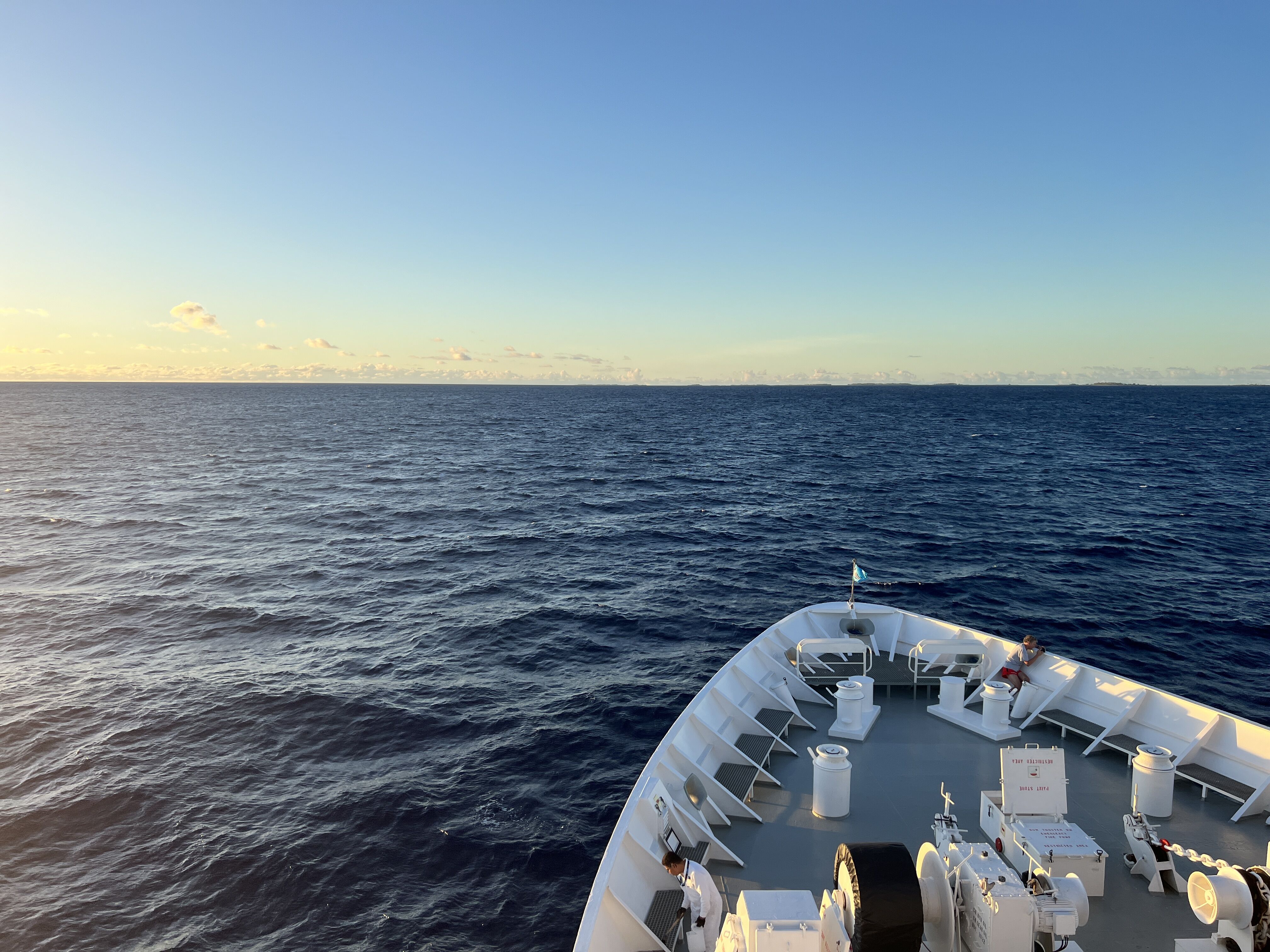 We started the day with excitement as we landed on the beautiful, pristine coast of Isla Genovesa - a true birder’s dream. Along the sandy beaches and steep cliffs of Darwin Bay, we were surrounded by an incredible array of birdlife. Frigatebirds soared closely overhead with their red pouches on full display, while Nazca and blue-footed boobies nested along the rocky ledges. Swallow-tailed gulls called out as we walked past. In the distance, we saw the stoic and elusive short-eared owl. The island was alive with color, sound, and constant movement. Between our excursions to Isla Genovesa, we snorkeled near Prince Philip’s Steps and discovered a vibrant world beneath the waves. Schools of fish swirled around us, a fur seal turned in the water as if dancing on cue, and sea lions relaxed nearby. As our last snorkeling adventure came to a close, we spotted a sea turtle resting calmly in a crevice. As the sun retreated into the sky on our last return to National Geographic Endeavor II, we reflected on the sheer magnitude of what we witnessed on our last full day. Isla Genovesa, like the other islands, gave us a connection to a sacred world. The harmony between land, sea, and sky reminded us how deeply interconnected, vital, and fragile these ecosystems are. Watching birds tend to their nests and marine life swim effortlessly, we were struck by how little space there is between wonder and reverence. We recognized that our journey wasn’t just about observing unique wildlife, it was about feeling part of something grander and beautifully ancient.