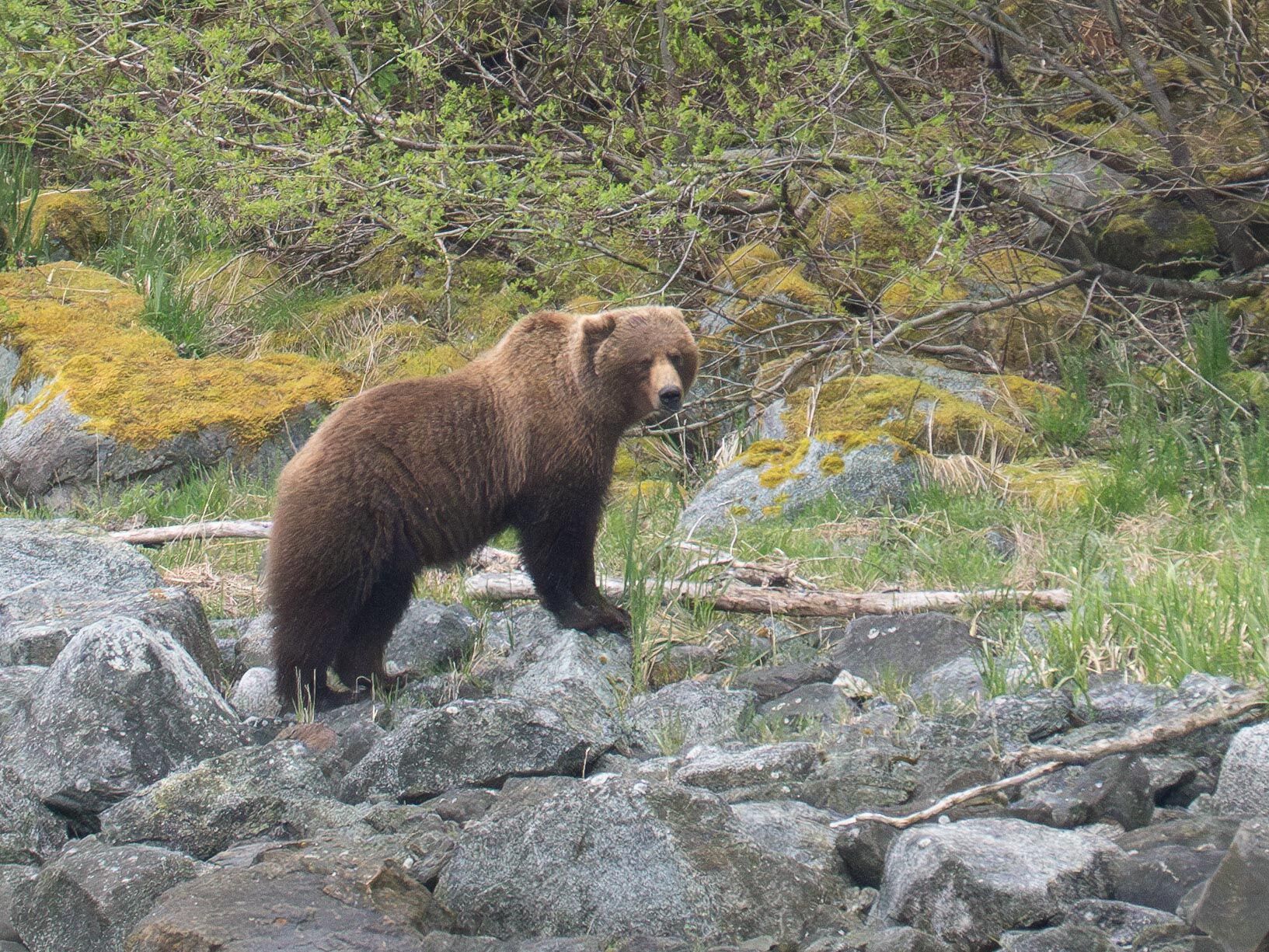 Today began the final day for National Geographic Venture’s two-week long journey from Seattle to Sitka. One could not help but feel reminiscent as we cruised the coastline to our final landing at Ushk Bay of Chichagof Island. We peeked our heads into the understory to find remnants of the bears that are out enjoying the sprouts of spring. One last breath of forest air and we were back on the water. We spent our afternoon cruising through narrow passages, admiring the forest and marine life. It has been a full two weeks of wildlife, new friendships, laughter, and intentional moments of silence in appreciation of this humbling landscape.