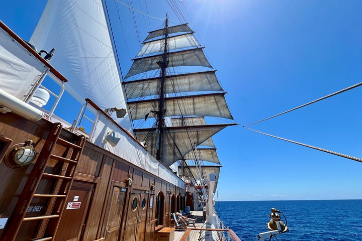 Upon returning to the ship and enjoying another wonderful dinner onboard Sea Cloud II, our crew entertained us with sea chanties, and we all had a lot of fun participating. It was a perfect ending to a perfect day!