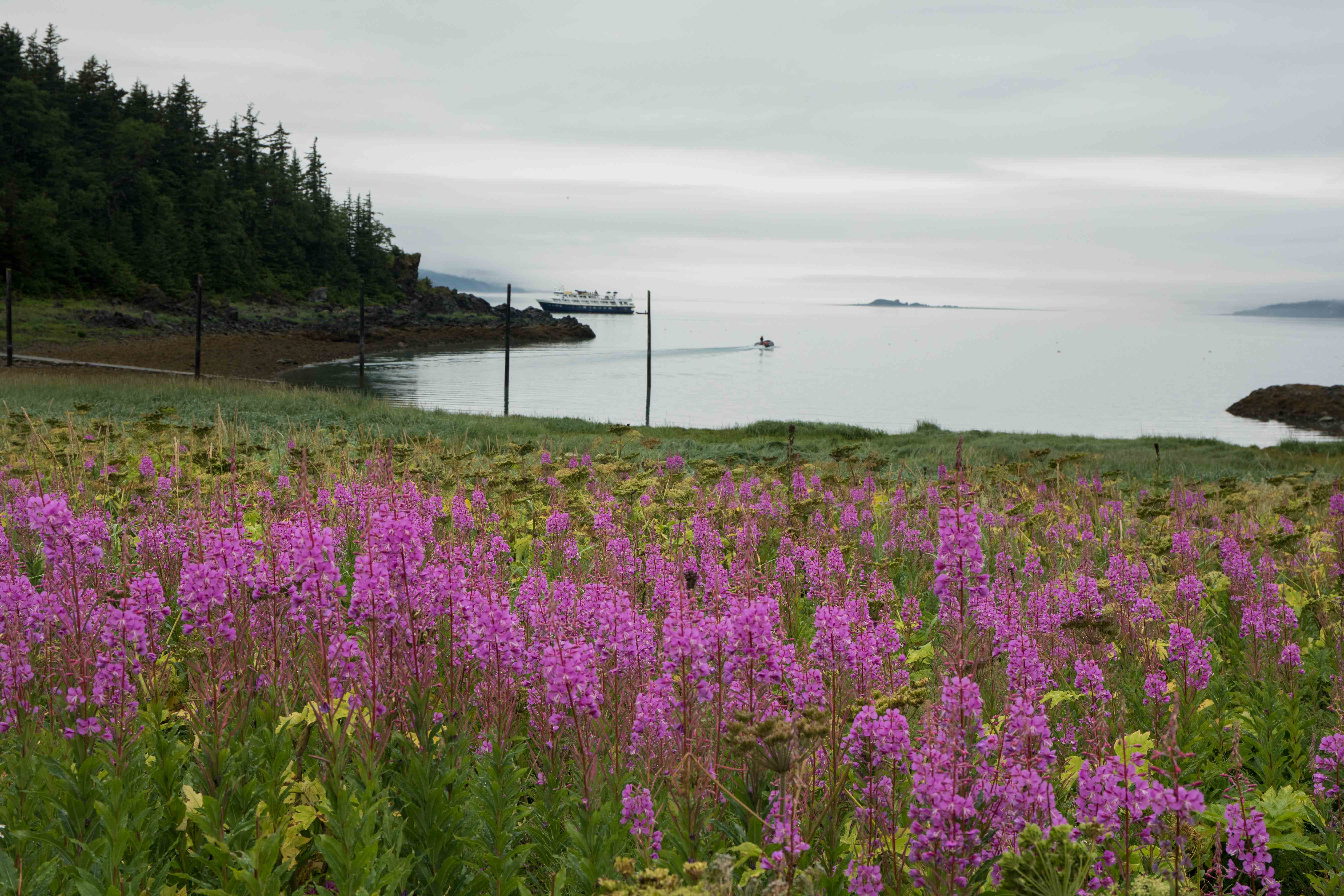 We anchored on this sunny morning off the small island of Vigur in Ísafjörđur, the “icy fjord”. Our fleet of Zodiacs was soon launched and took us to the dock where we were greeted by puffins and by the family who has farmed on this lovely and isolated island for generations. Here down from the nests of wild Common Eiders is collected, cleaned, and sold for making eiderdown comforters and pillows. The eider ducks are never harmed by this practice and, indeed, the farmers care for the orphaned ducklings. The shore was crowded with striking black guillemots. Puffins lined a cliff top. We were guided along a path through a grassy meadow where Arctic terns were nesting. We were served coffee and delicious cakes. The weather was so pleasant we sat outside and basked in the sunshine while enjoying the wonderful view over the fjord.